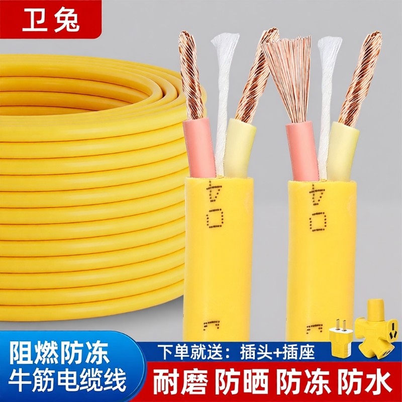 家用防冻软线电线2芯1 1.5 2.5平方护套线户外防水牛筋电源电缆线