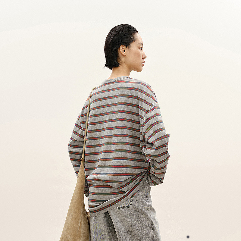 【商场同款】LESS2026年春新款长款宽松含棉圆领长袖T恤2Q2113370