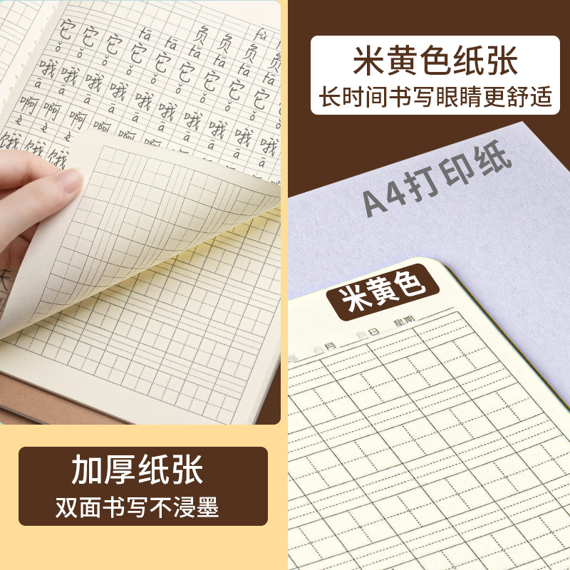 16K汉语拼音本小学生专用拼音本一二年级统一标准生字本大号牛皮纸语文田字本幼儿园学前班拼音田字格写字本