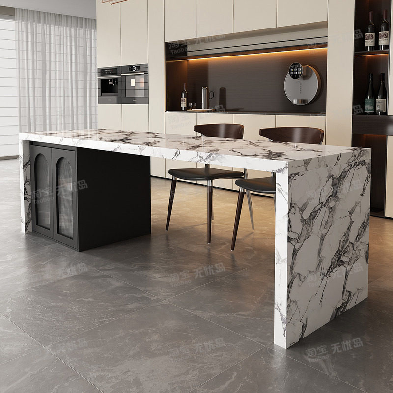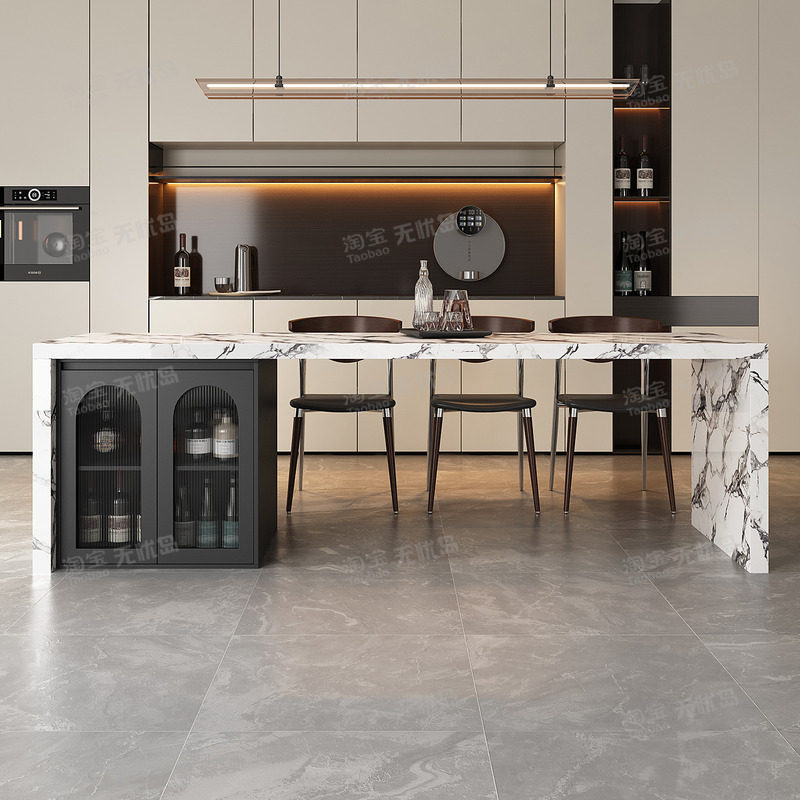 齐平款岛台餐桌一体家用定制厨房吧台小户型轻奢中岛台倒台储物柜