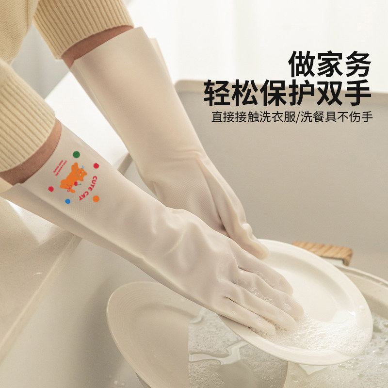 洗碗手套女家用厨房耐用型贴手防水胶皮手套刷碗做家务清洁洗衣服