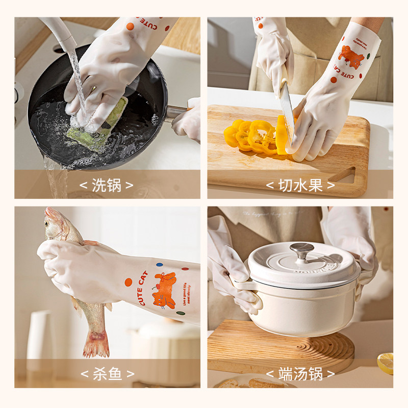炊大皇洗碗手套女加绒秋冬家务清洁厨房耐用防水橡胶皮洗衣服刷碗