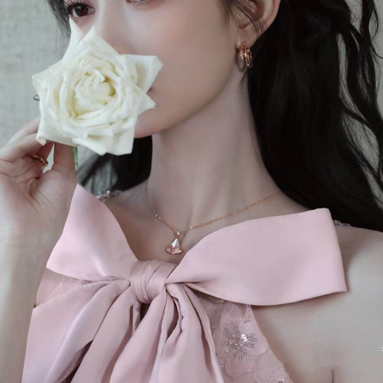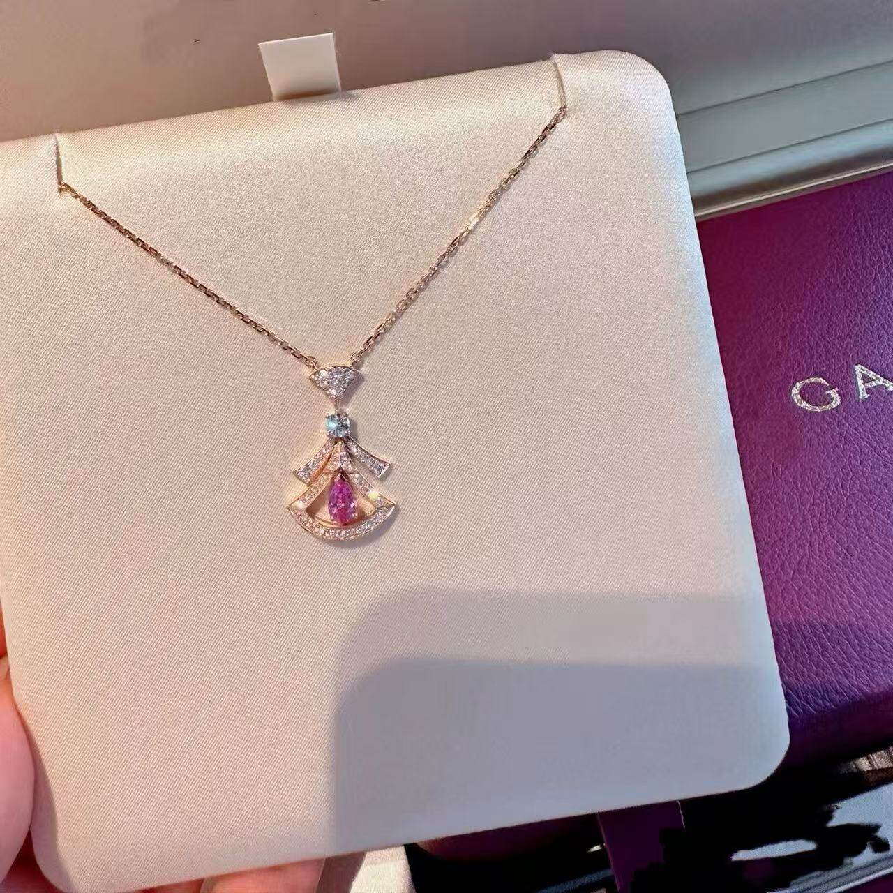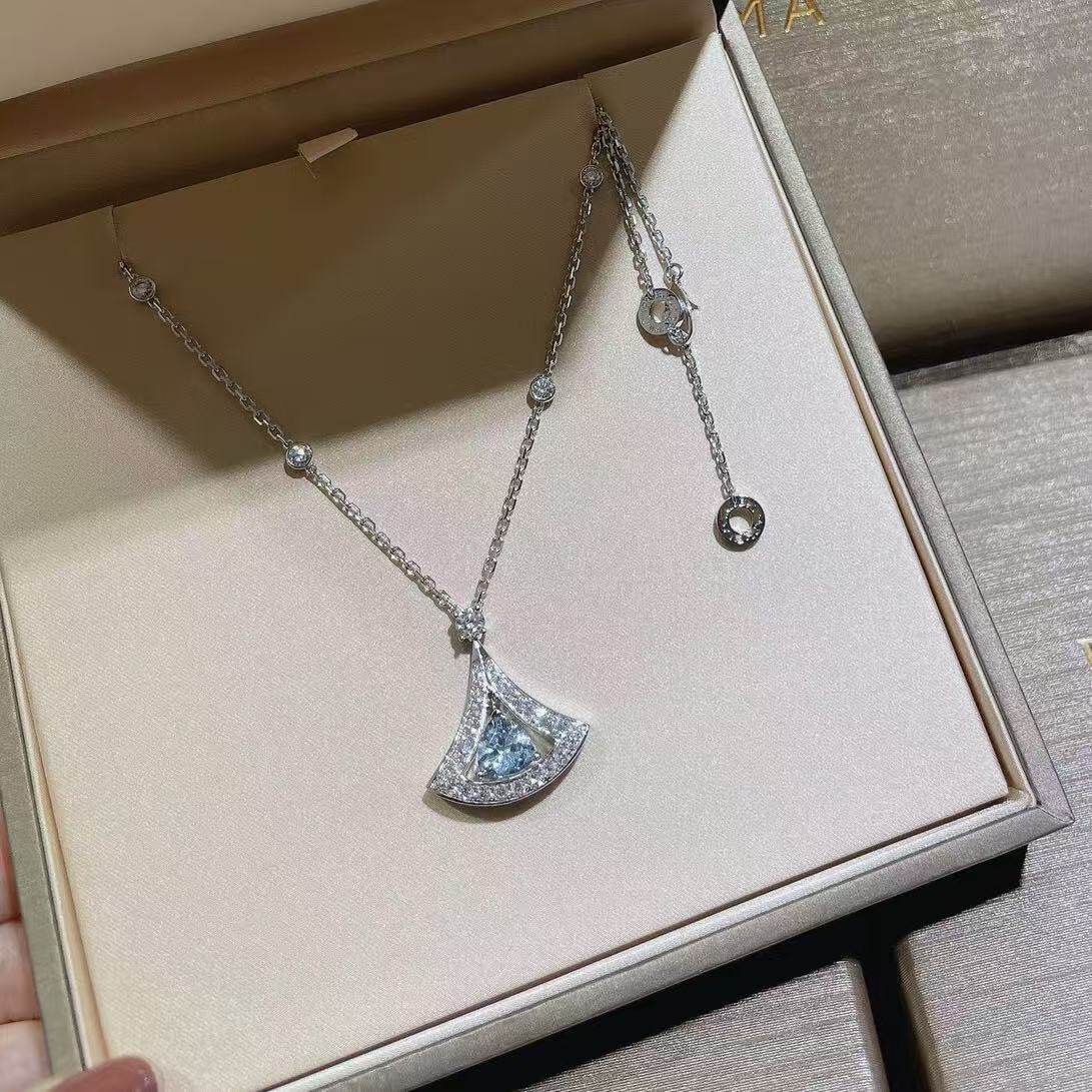 全新品质粉蓝宝粉钻裙子扇子海蓝宝红S925项链七夕送玫瑰金新款