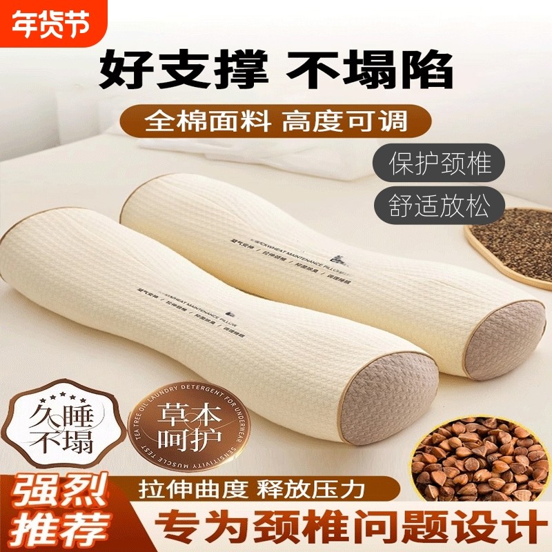 枕头护颈椎成人助睡眠反弓牵引枕硬圆柱颈学生荞麦壳苦荞不塌陷