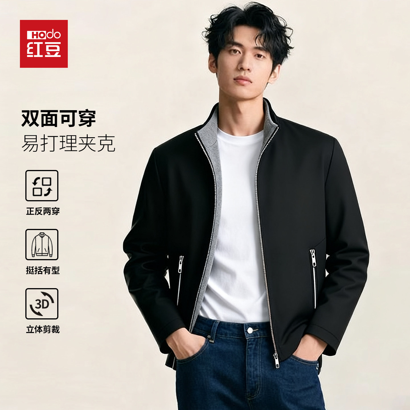 红豆立领夹克男士秋冬新款商务休闲行政中老年外套男装爸爸装