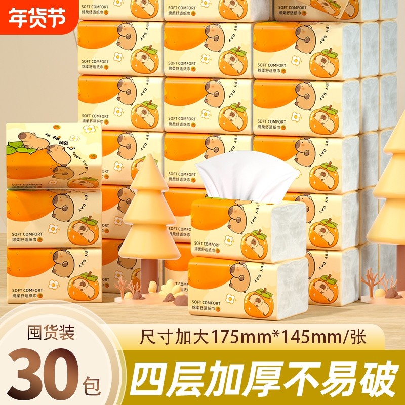 商城爆款30大包纸巾抽纸家用卫生纸餐巾纸擦手纸整箱实惠装批发
