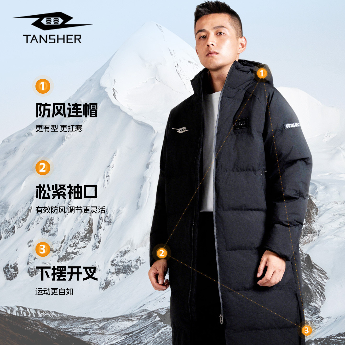 弹射者长款棉服户外加厚冬季防寒外套防风保暖体育生运动连帽棉袄