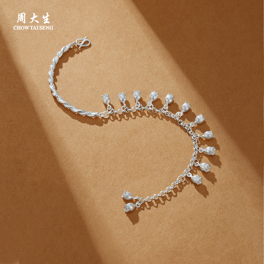 周大生铃兰花银手链女足银S990手饰小众高级感送女友生日礼物