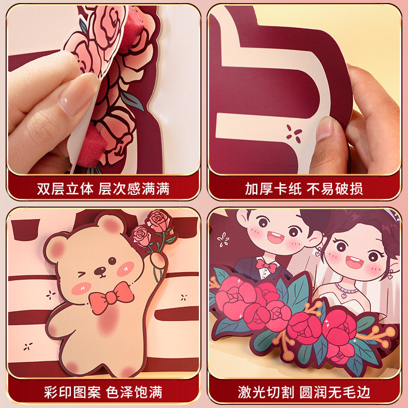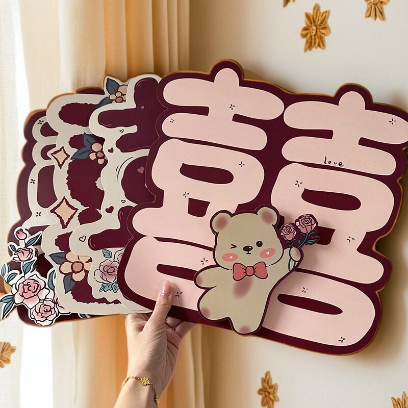 原创卡通喜字静电贴纸结婚专用男女方婚房布置窗户门新房装饰备婚