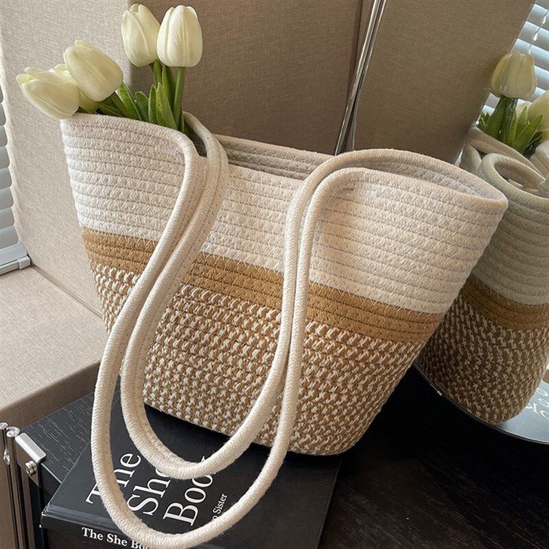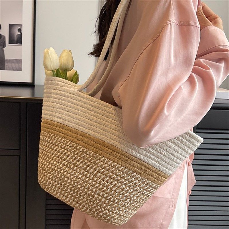 编织草编包包女大容l量2024新款度假海边沙滩菜篮子托特单肩腋下