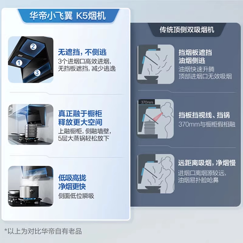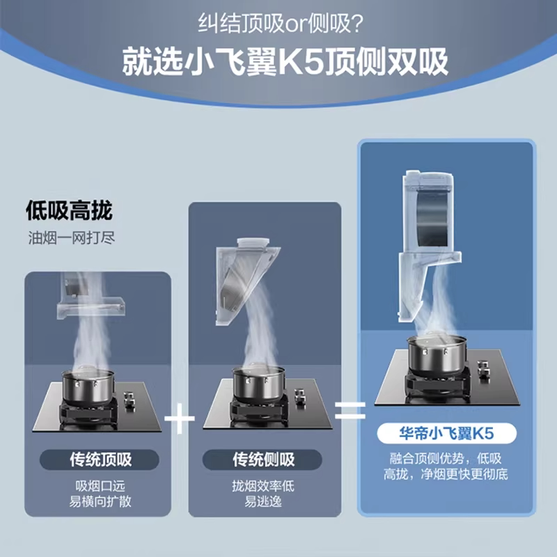 华帝小飞翼K7顶侧双吸油烟机大吸力家用自动洗抽油烟机燃气套餐K5