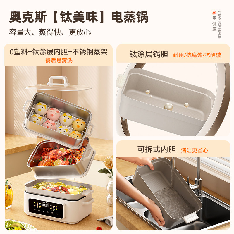 奥克斯可拆洗电蒸锅多功能家用不锈钢一体锅大容量蒸笼三层分体式