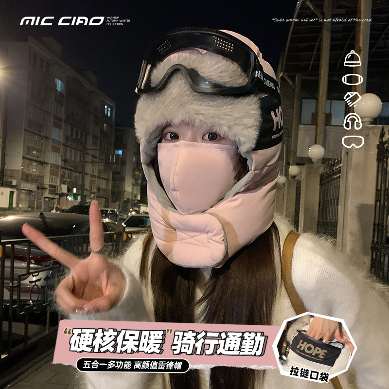 帽子女冬季加绒加厚保暖防寒雷锋帽男东北骑行电动车防风面罩冬天