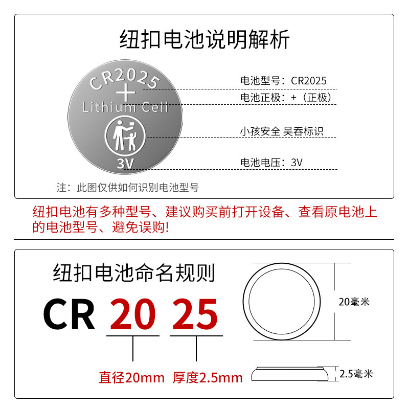 纽扣电池手表遥控器玩具车钥匙专用CR2032/CR2025/CR2016