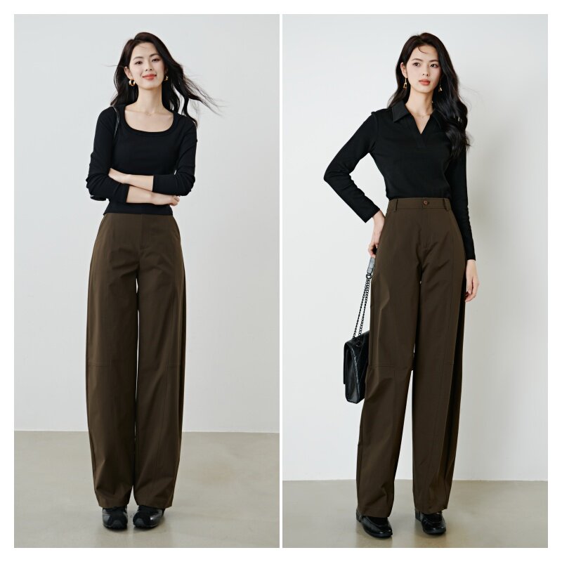 唐狮DESSO秋冬新款糯米裤高腰垂感宽松加绒直筒阔腿裤5