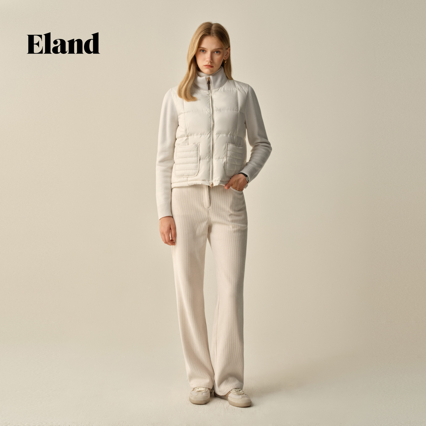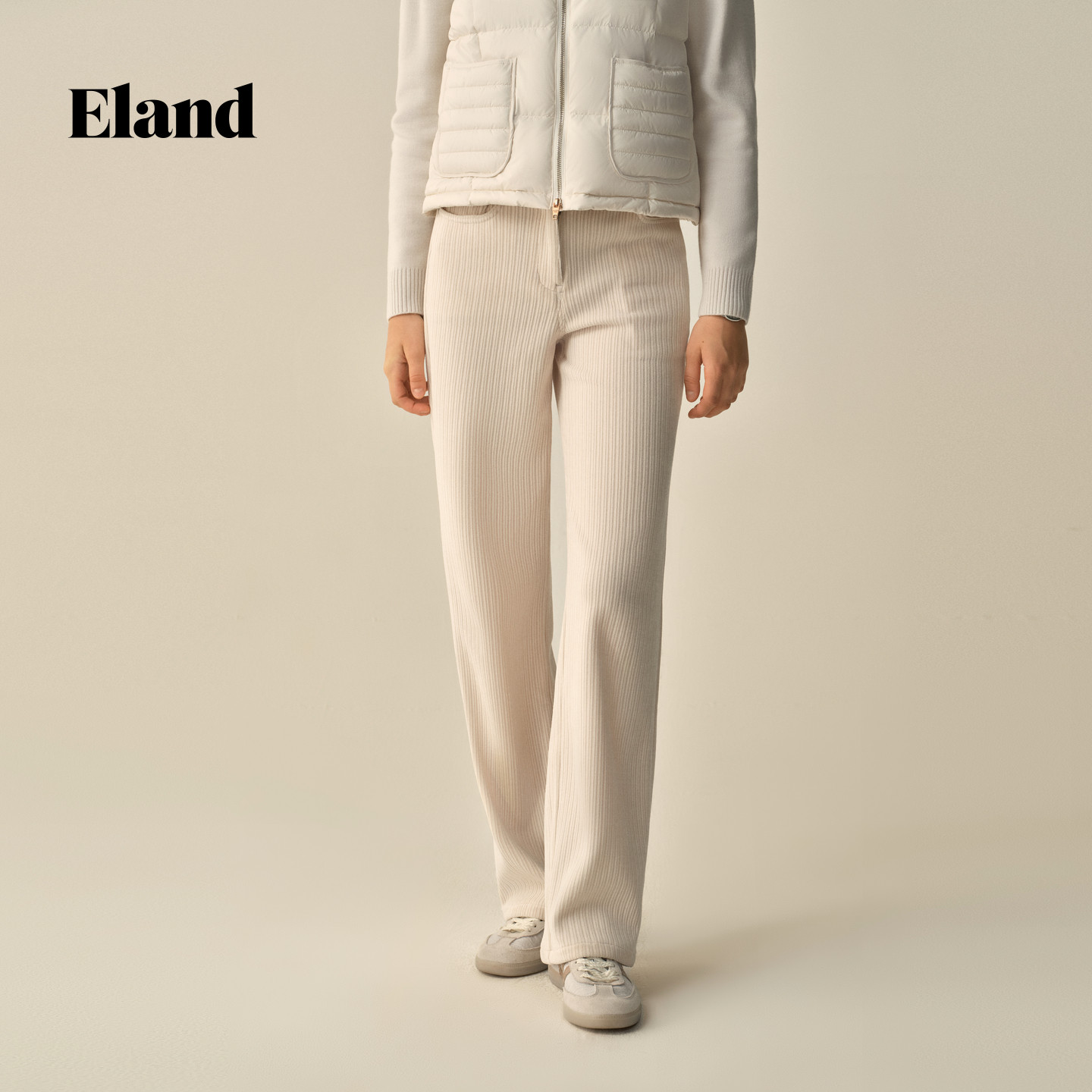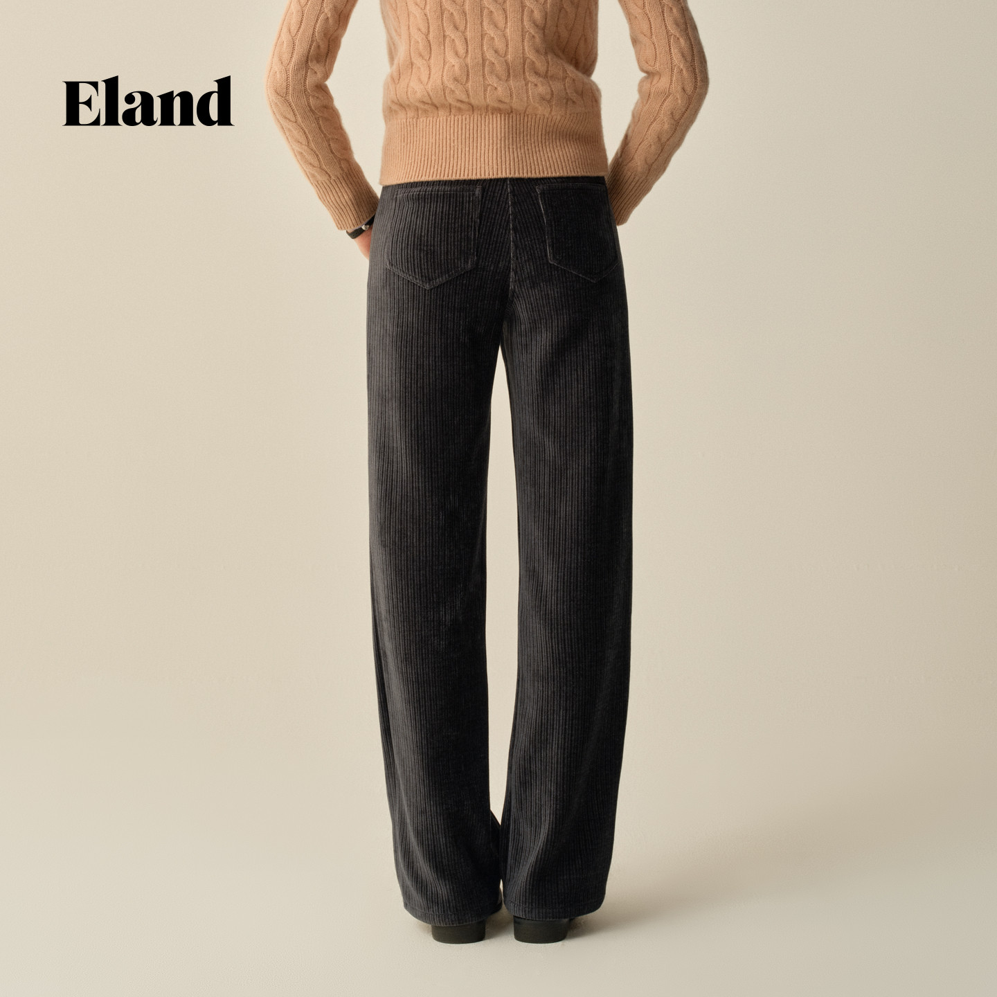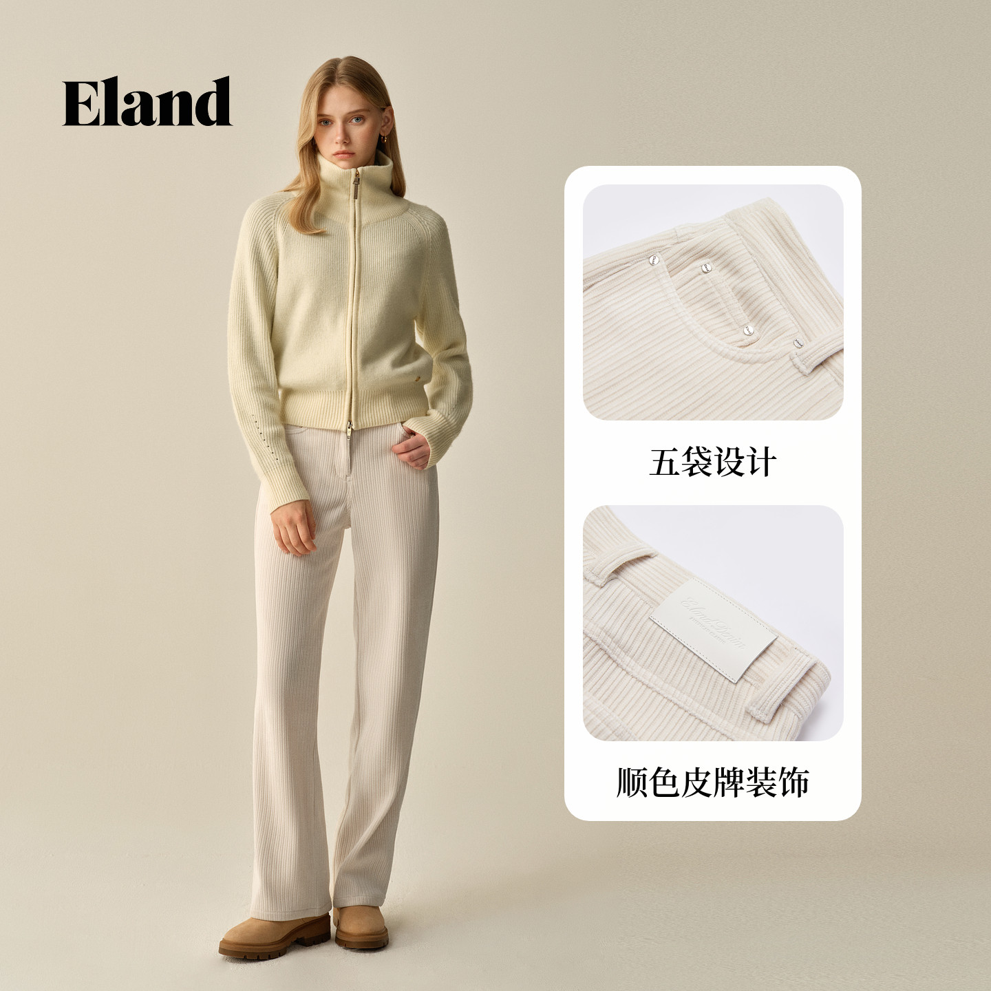 Eland衣恋休闲裤女直筒裤收腰显瘦纯色灯芯绒裤子2025冬季新款