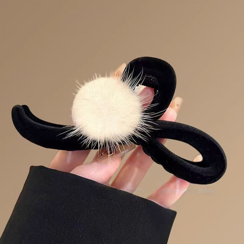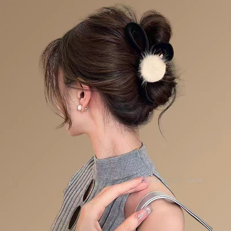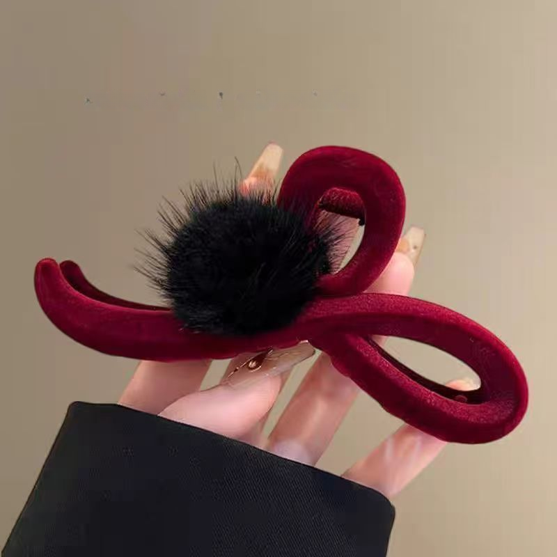 新年冬季毛毛抓夹新款红色高级丝绒鲨鱼大号夹子头饰后脑勺发夹