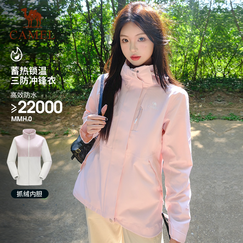 骆驼冲锋衣女三合一2025秋冬新款户外登山服装男防风防水加绒外套