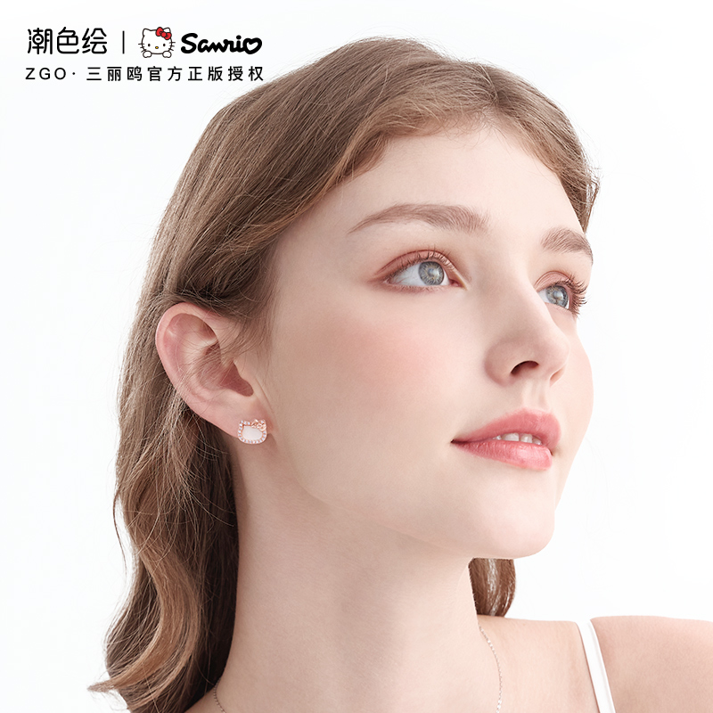 潮色绘三丽鸥HelloKitty耳钉纯银女款2025爆款高级感独特圣诞礼物
