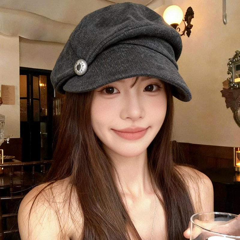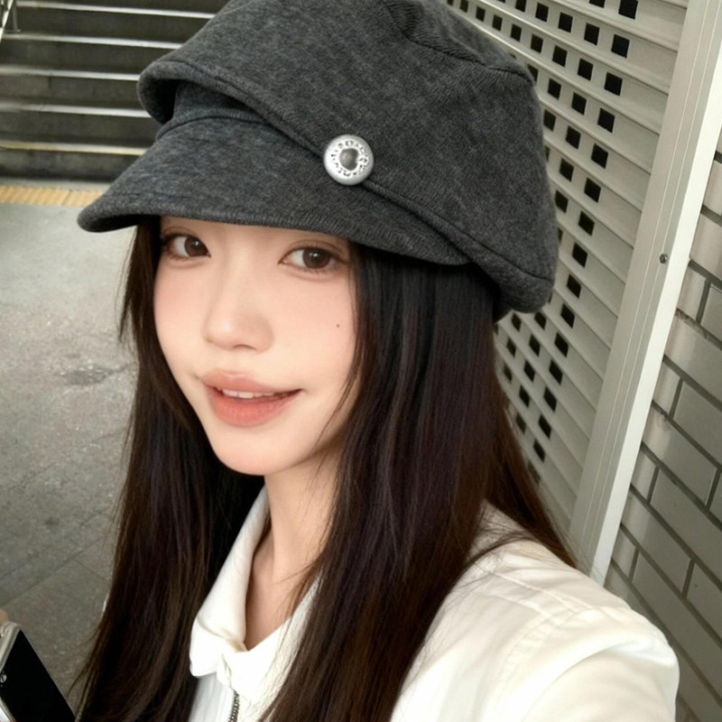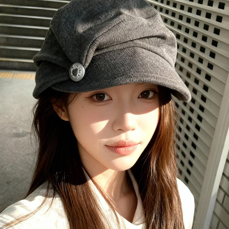 灰色复古褶皱贝雷帽女秋冬百搭显脸小八角帽大头围文艺画家帽子