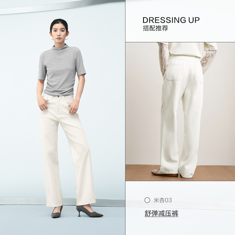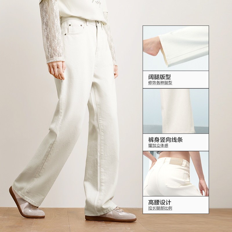 森柔牛仔|森马阔腿牛仔裤女2025秋冬白色牛仔裤简约女士高腰裤子