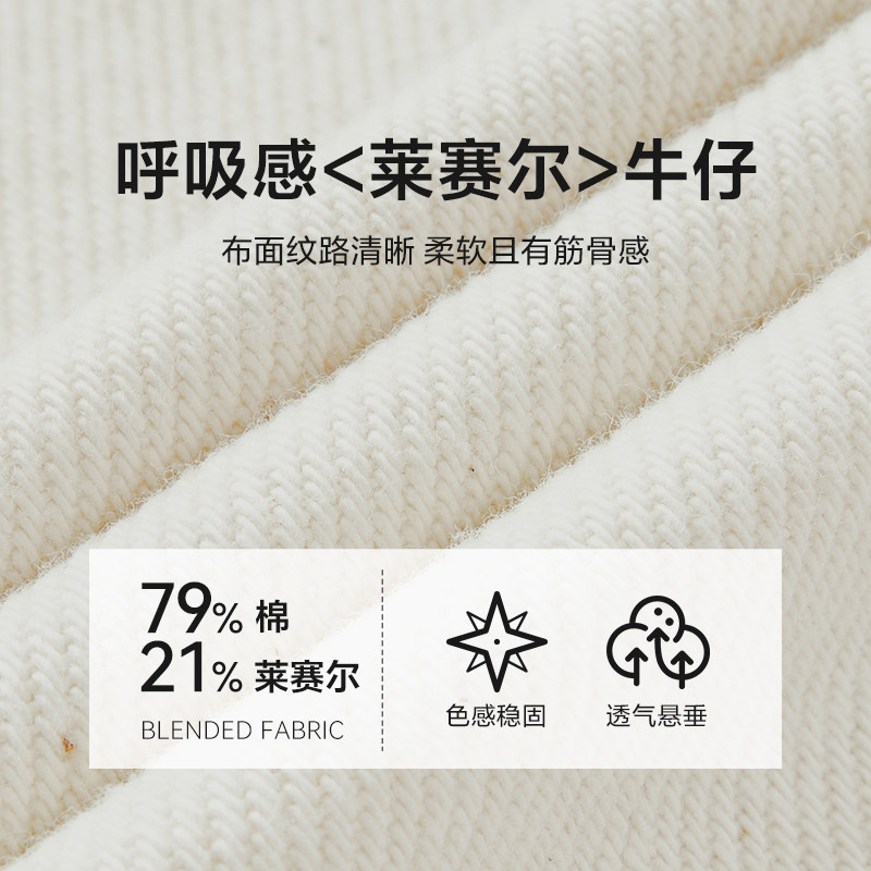 爱居兔莱赛尔白色牛仔裤女春秋新款气质通勤百搭显瘦直筒裤
