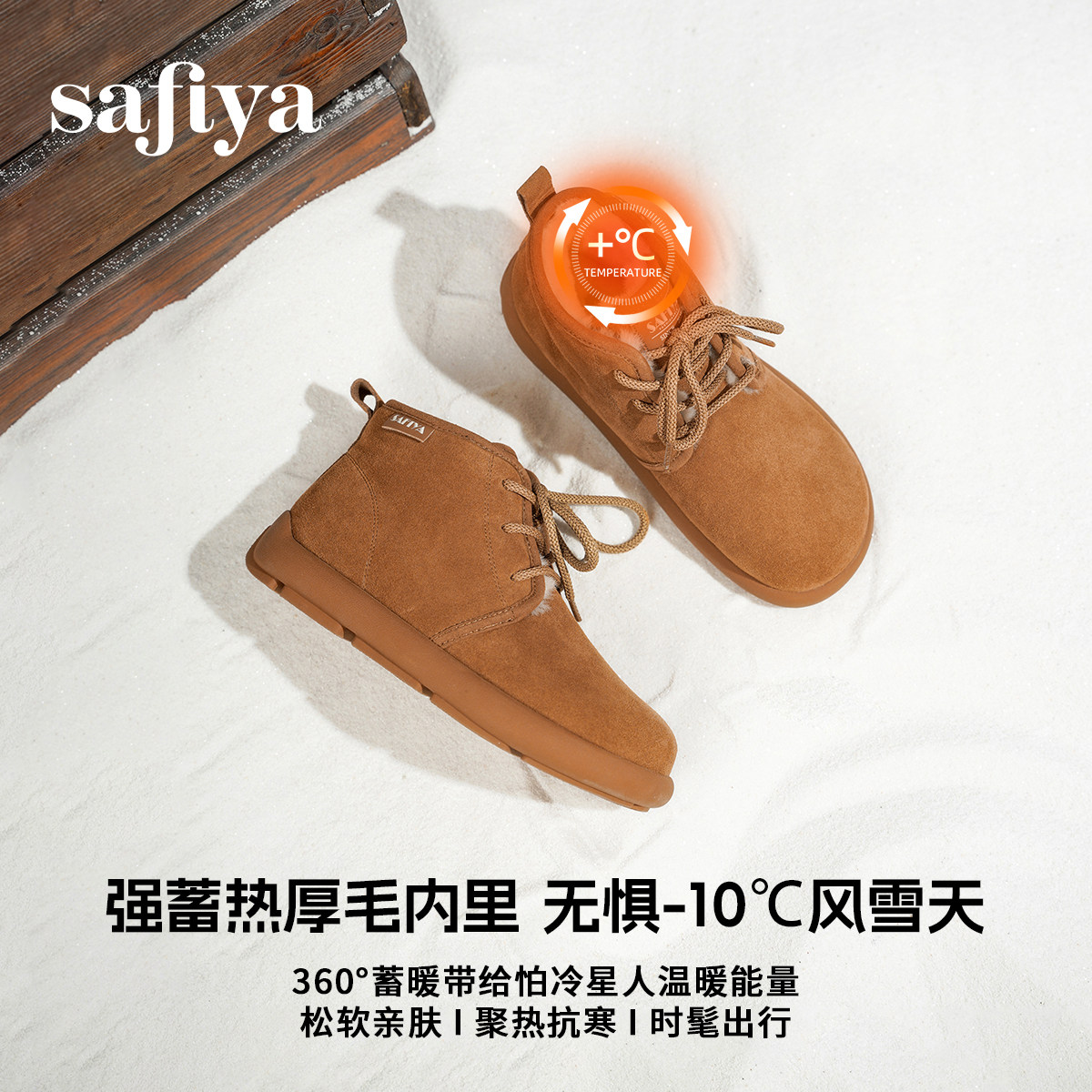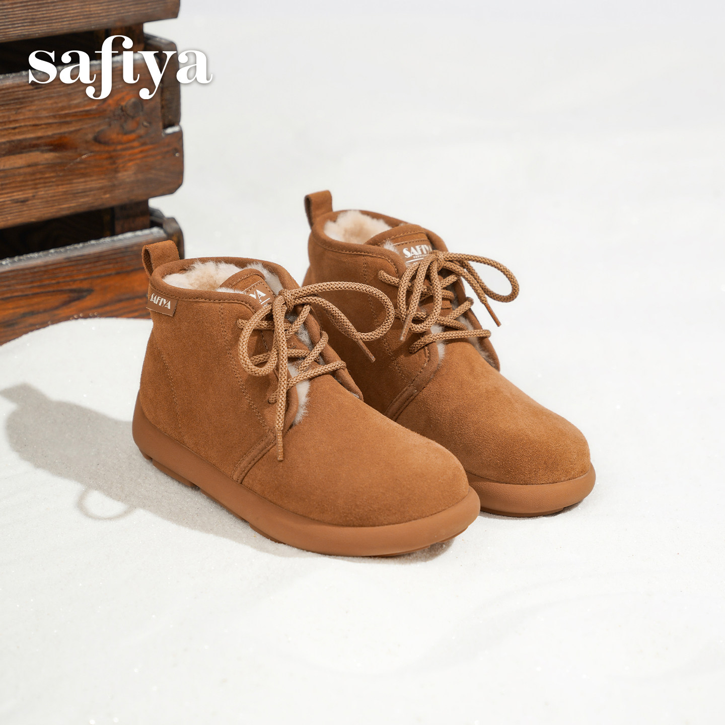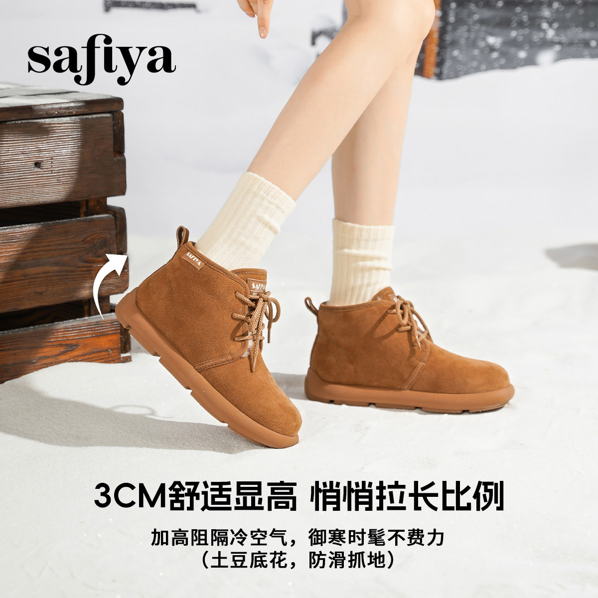 Safiya/索菲娅2025冬季新款软底丑萌系带保暖马丁雪地靴短靴女