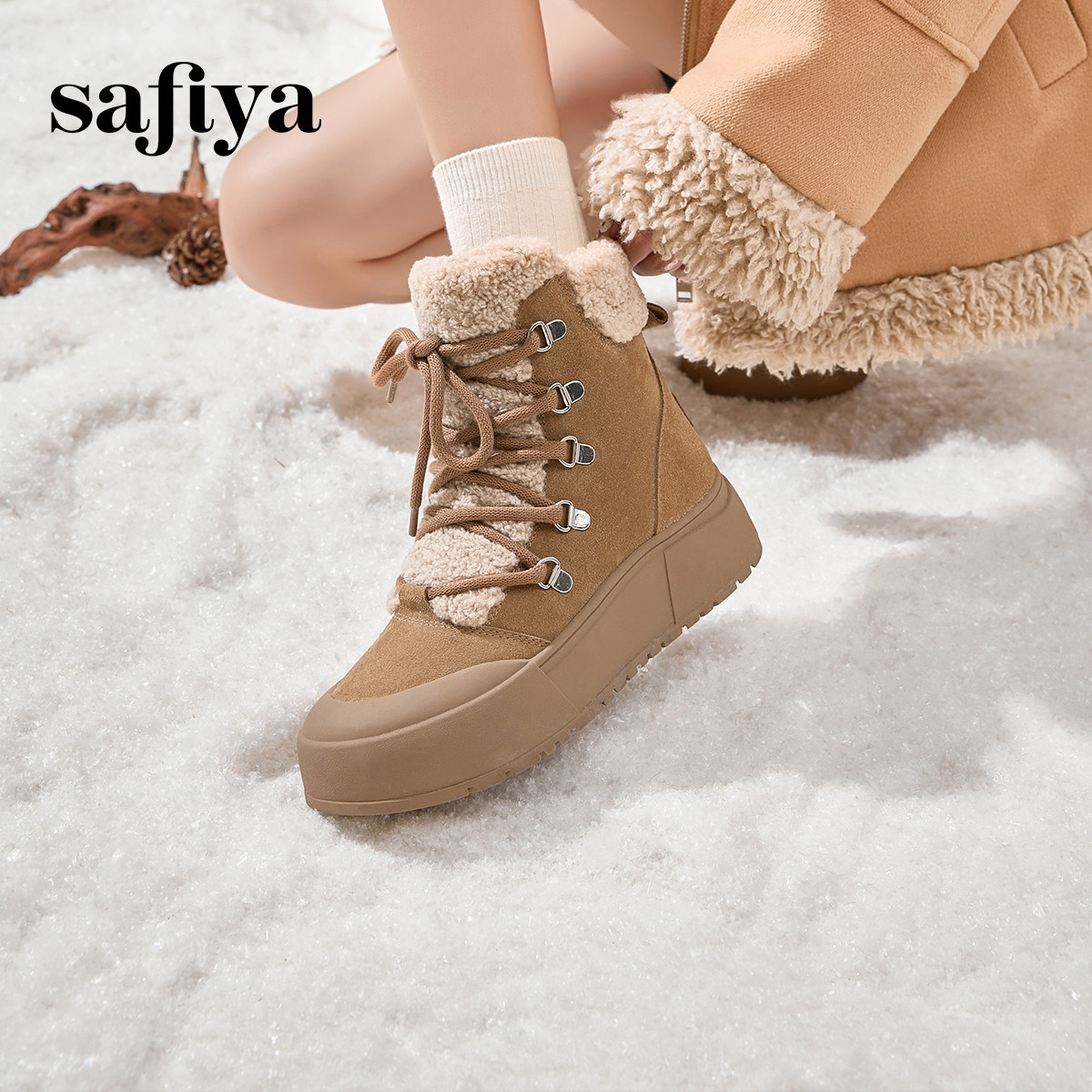 Safiya/索菲娅冬季加绒保暖系带时尚休闲百搭厚底户外休闲雪地靴