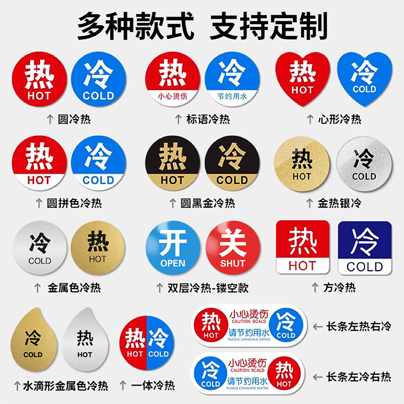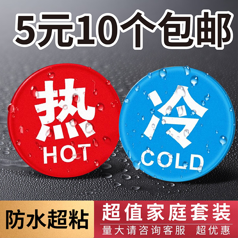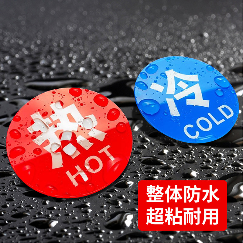 洗手台冷热水温馨提示贴标志牌酒店房间淋浴喷头冷热水标识牌定制后厨水房水龙头冷热贴亚克力创意小标牌订做