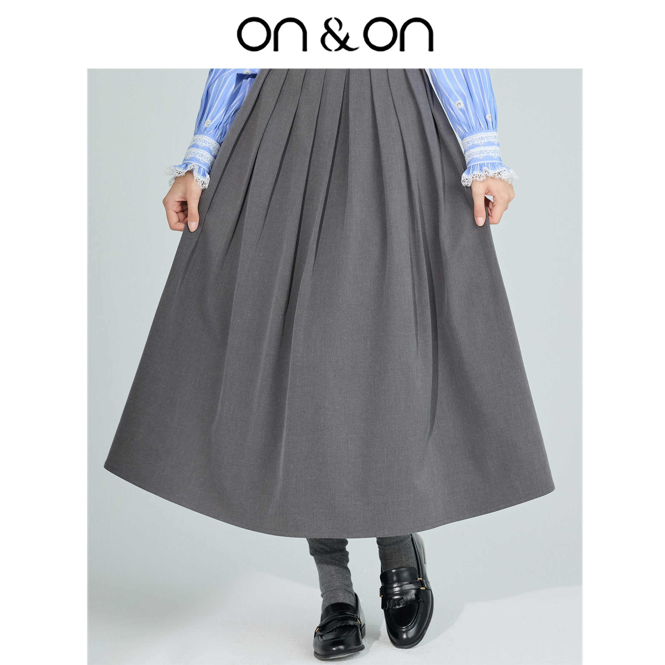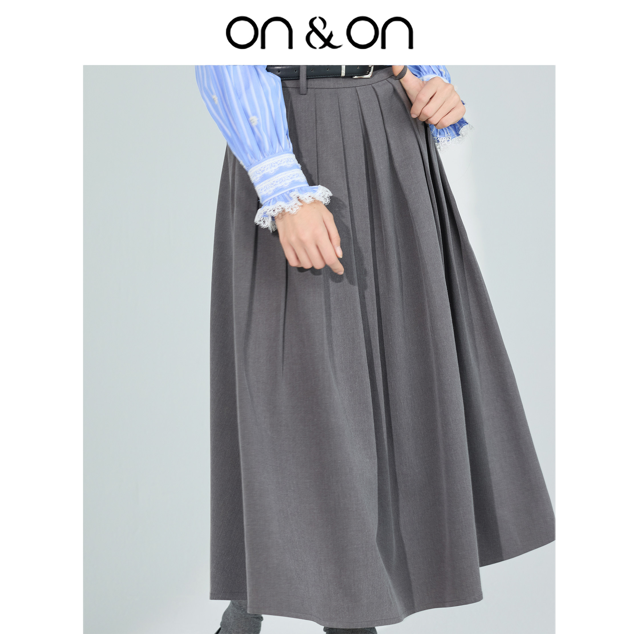 ON&ON/安乃安2026春季新款高腰高弹力带腰带经典百搭A字百褶半裙