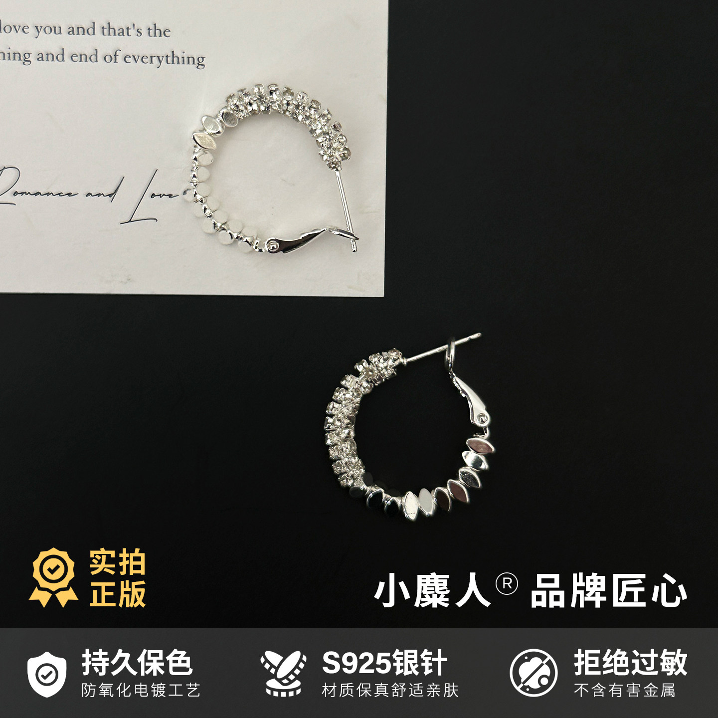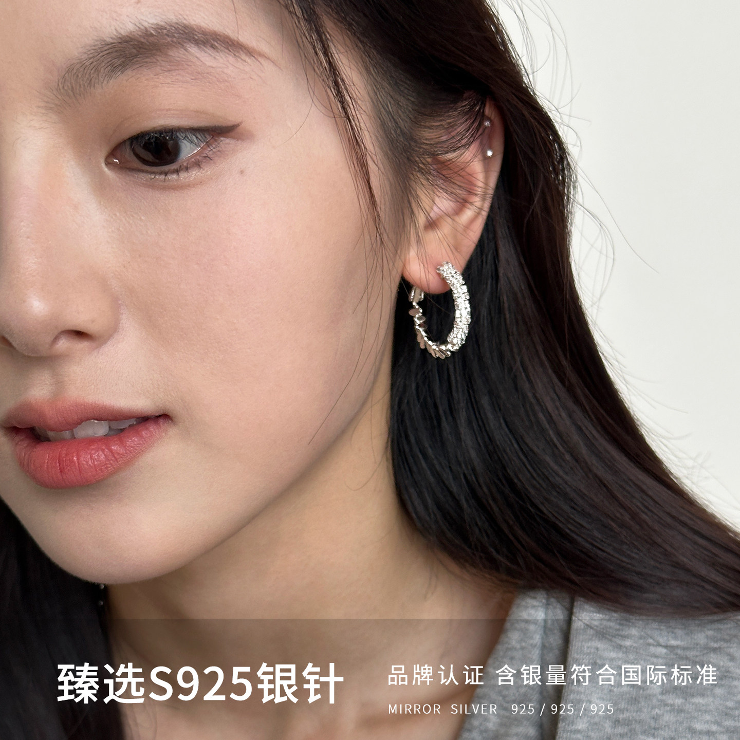 小麋人925纯银冰晶碎银子银针耳圈女耳钉耳环耳饰网红小众潮爆款