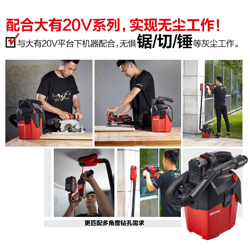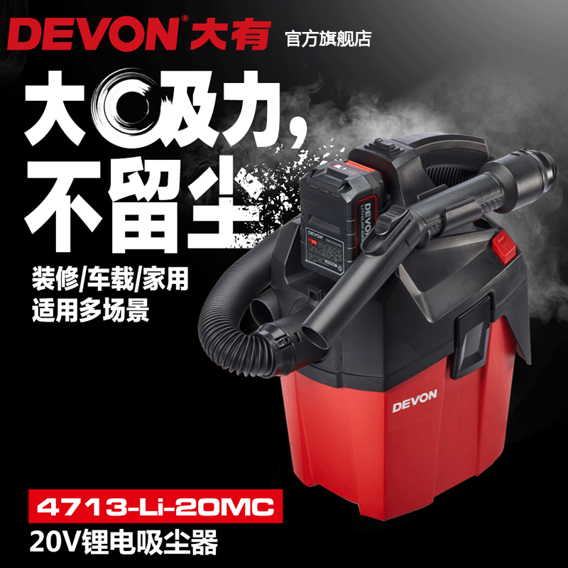 大有20V锂电吸尘器4713无线便携强力肩带工业除尘电动工具