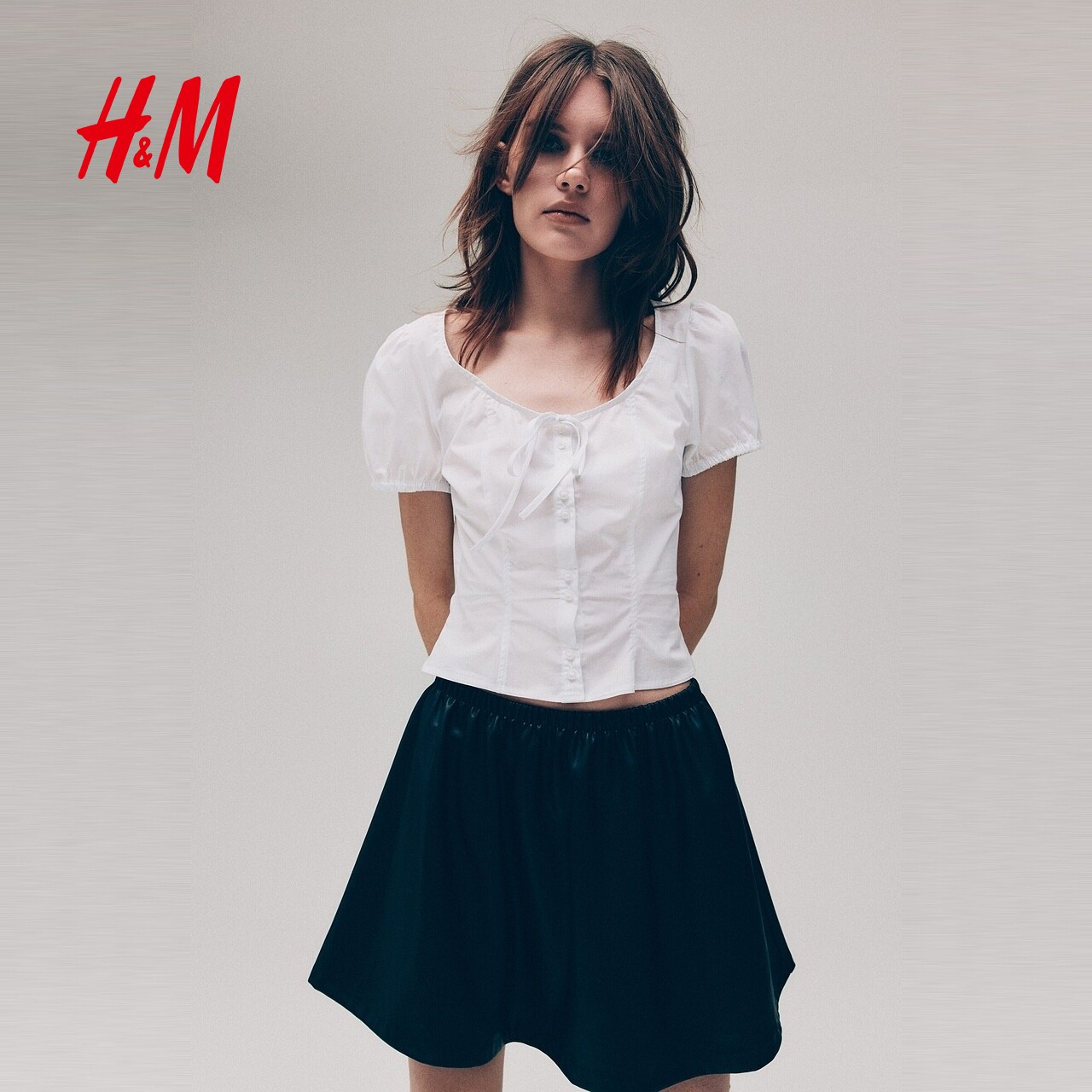 HM女装衬衫2026春季新款美式甜心风泡泡袖府绸上衣潮流款1317041