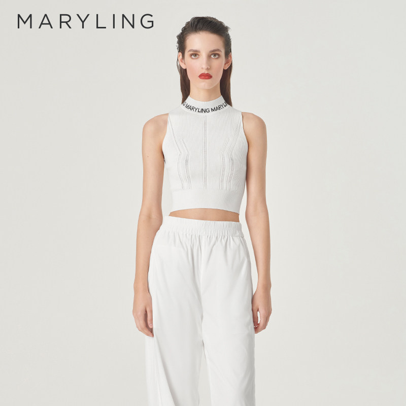 MARYLING玛俪琳春季新品白色高领针织背心A1EBW07650