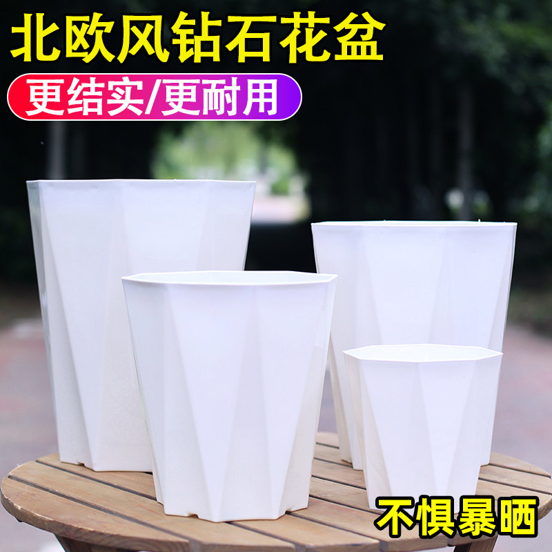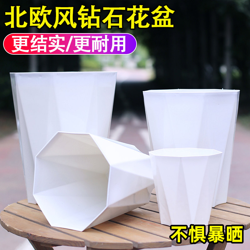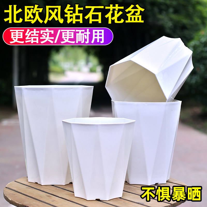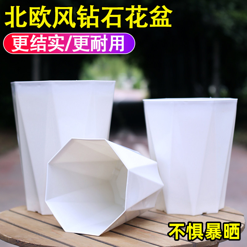 简约北欧风八角形树脂花盆加厚塑料控根不闷根透气花卉绿植钻石盆