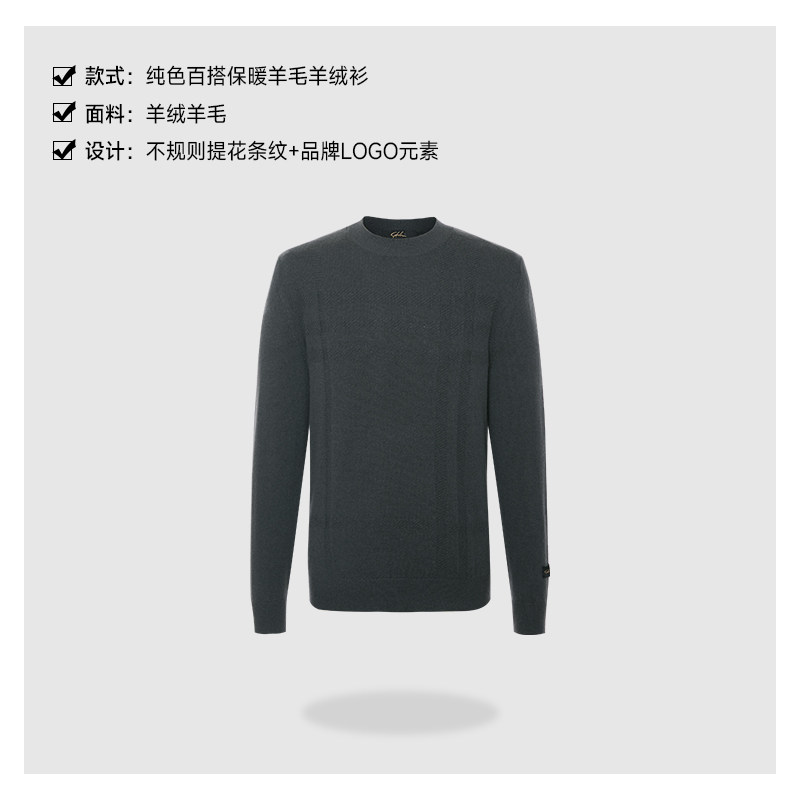 SATCHI沙驰男装男士羊绒衫冬季新款商务保暖圆领针织毛衣男厚
