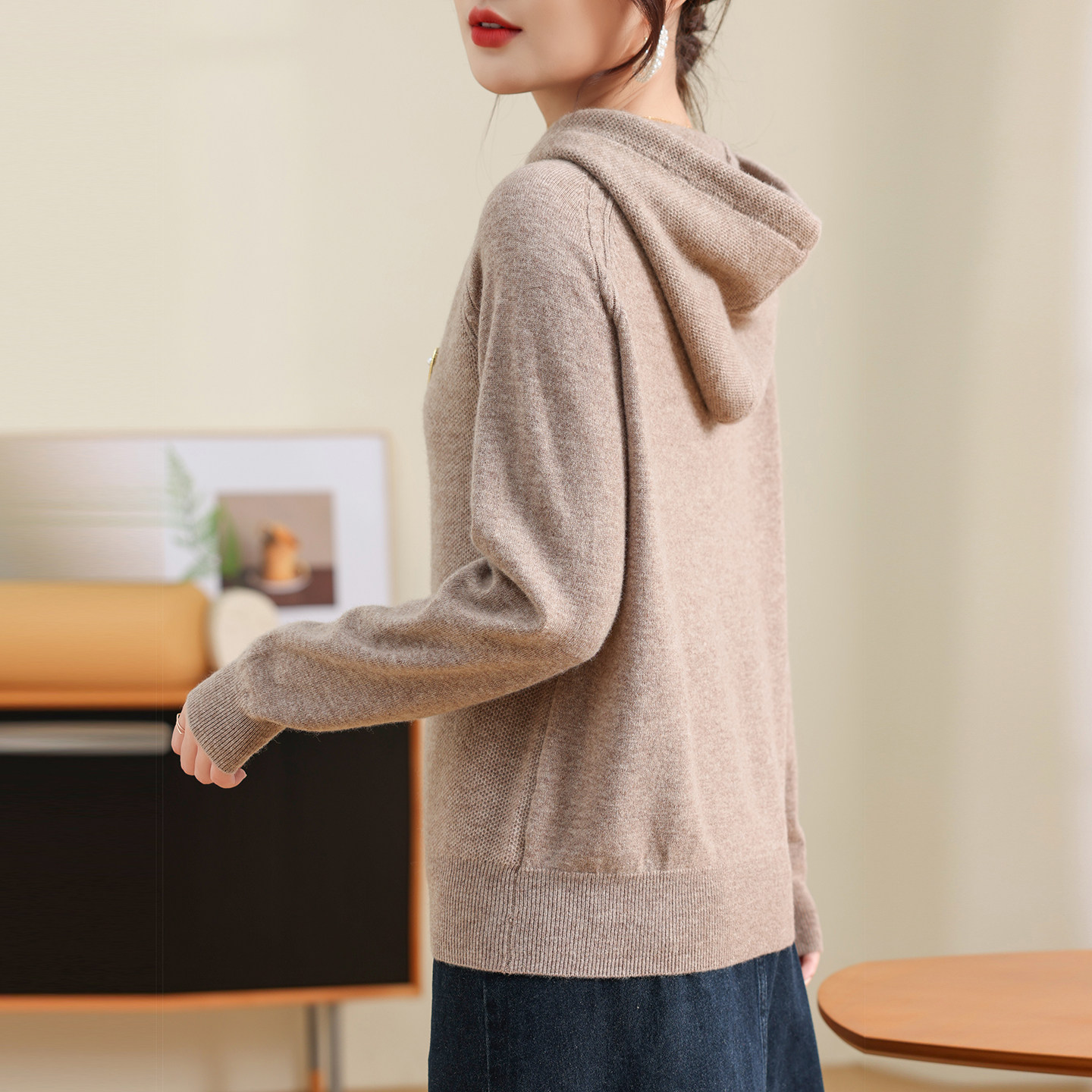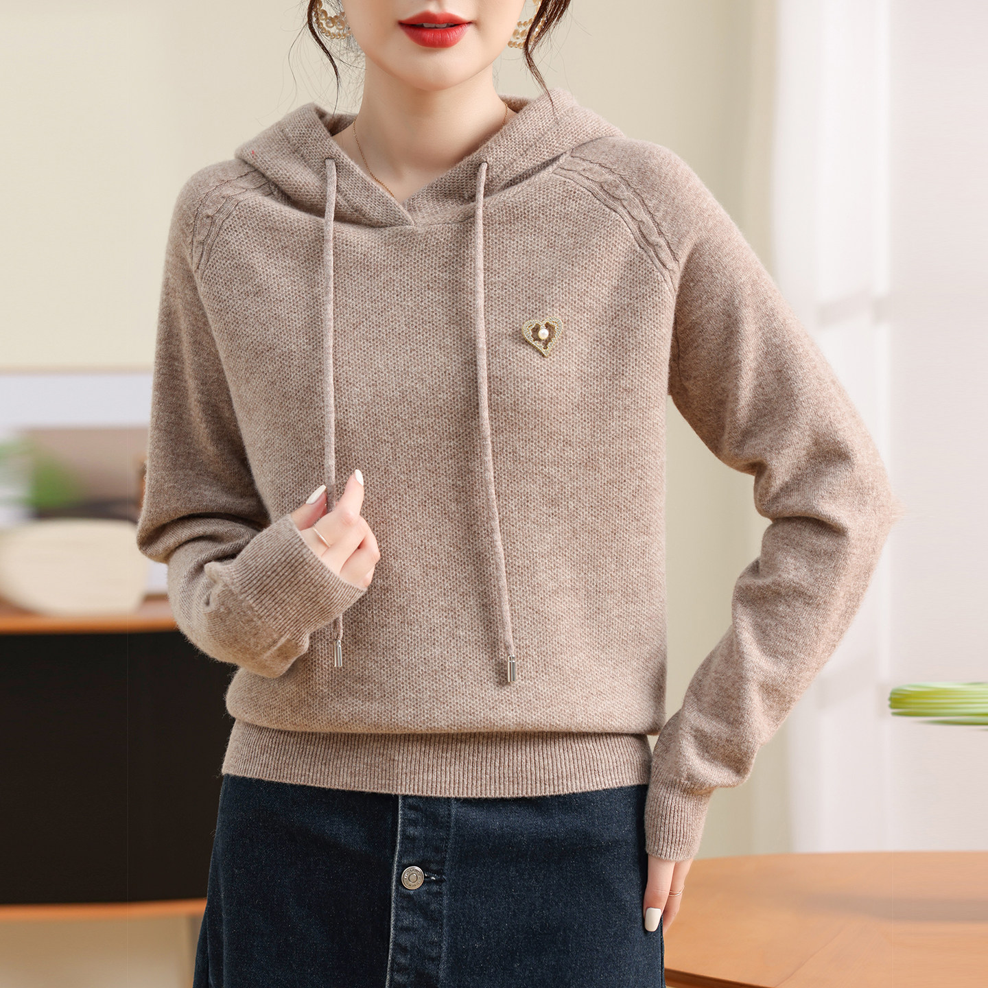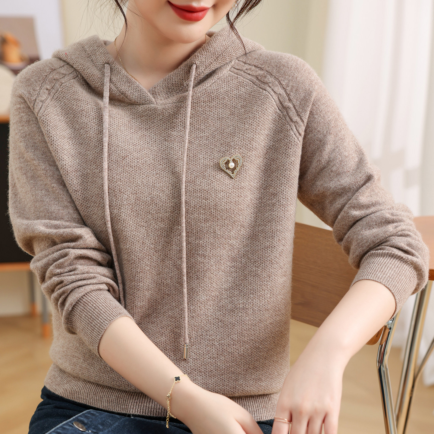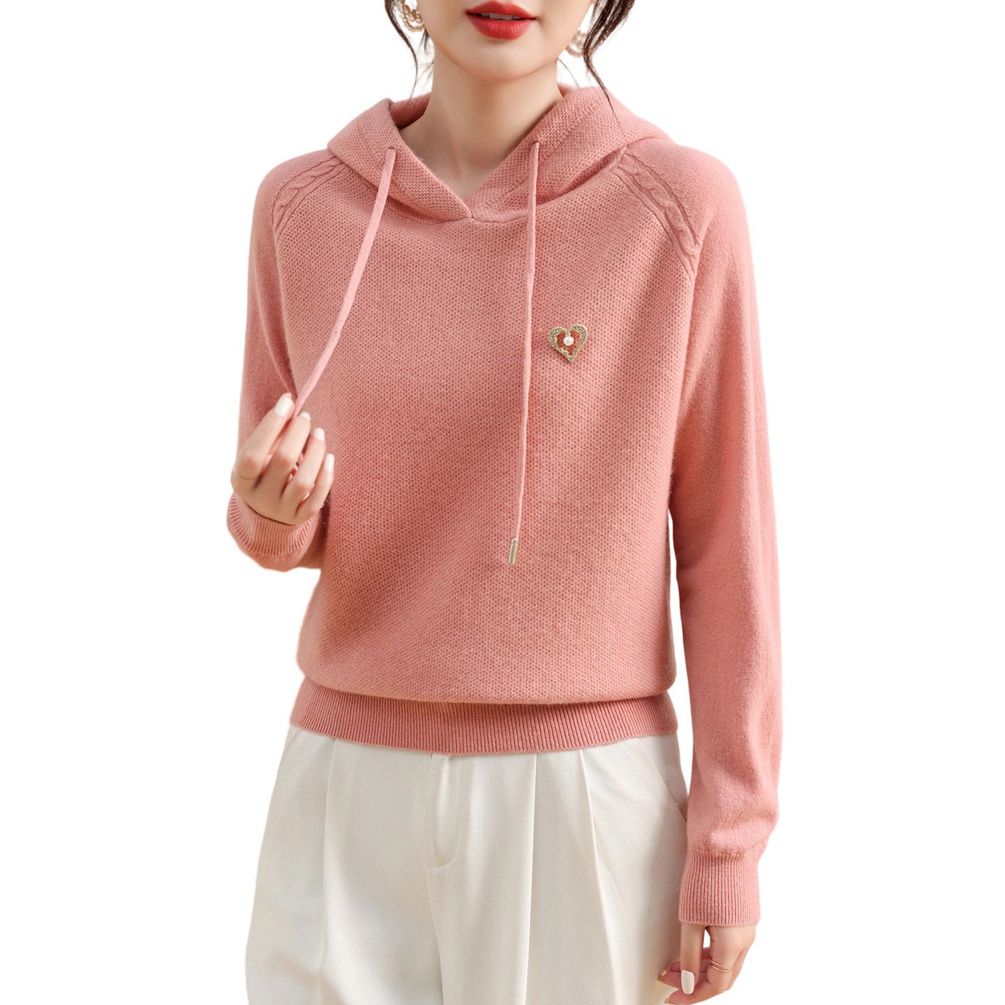 恒源祥连帽毛衣秋冬装100%羊毛衫套头羊毛卫衣女装软糯针织衫上衣