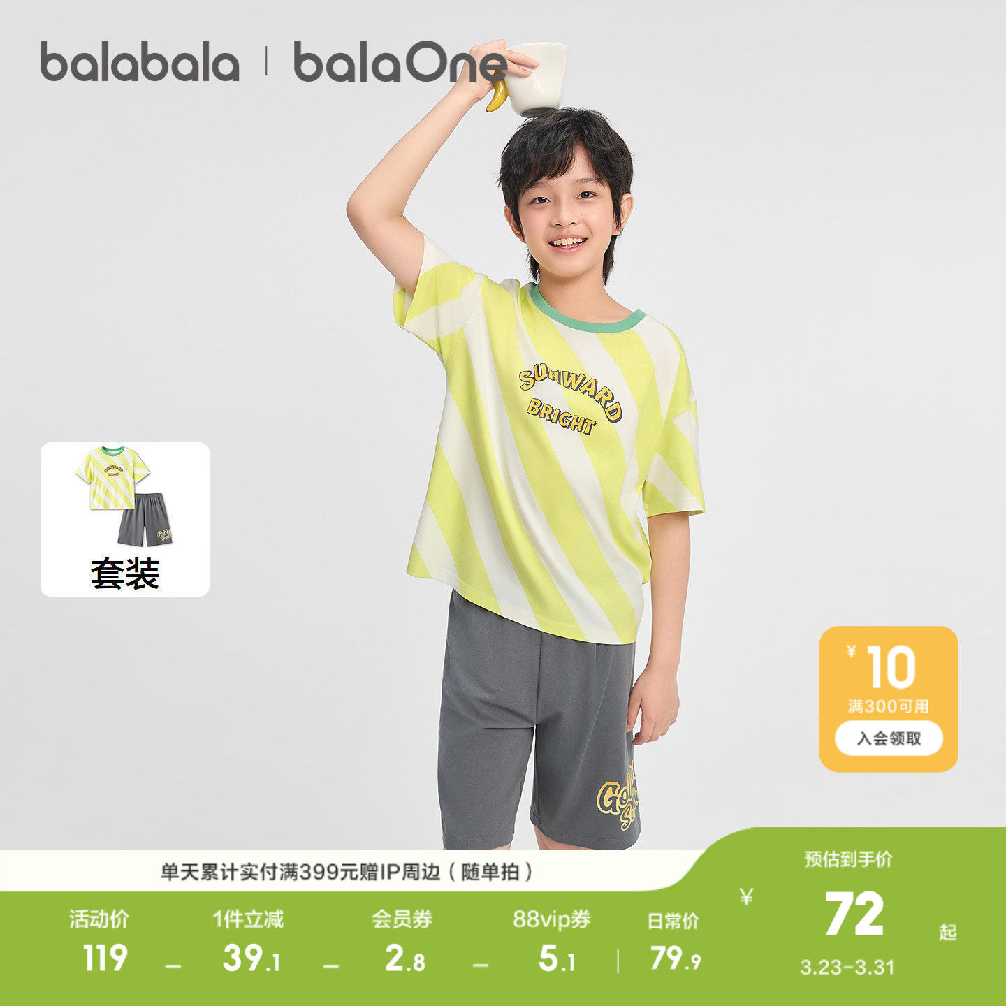 巴拉巴拉儿童睡衣套装夏季空调服男童家居服宝宝短袖清凉抗菌舒适