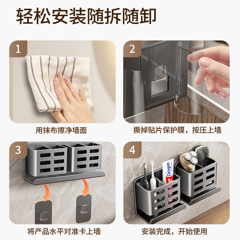 梳子置物架壁挂免打孔卫生间浴室洗漱台墙上牙膏牙刷剃须刀收纳筒