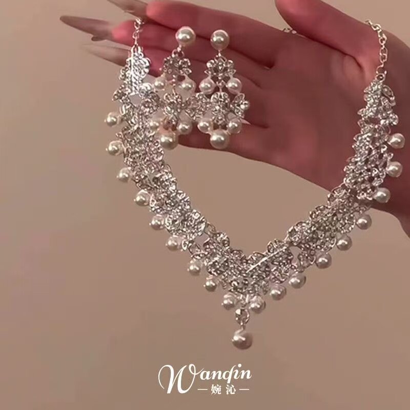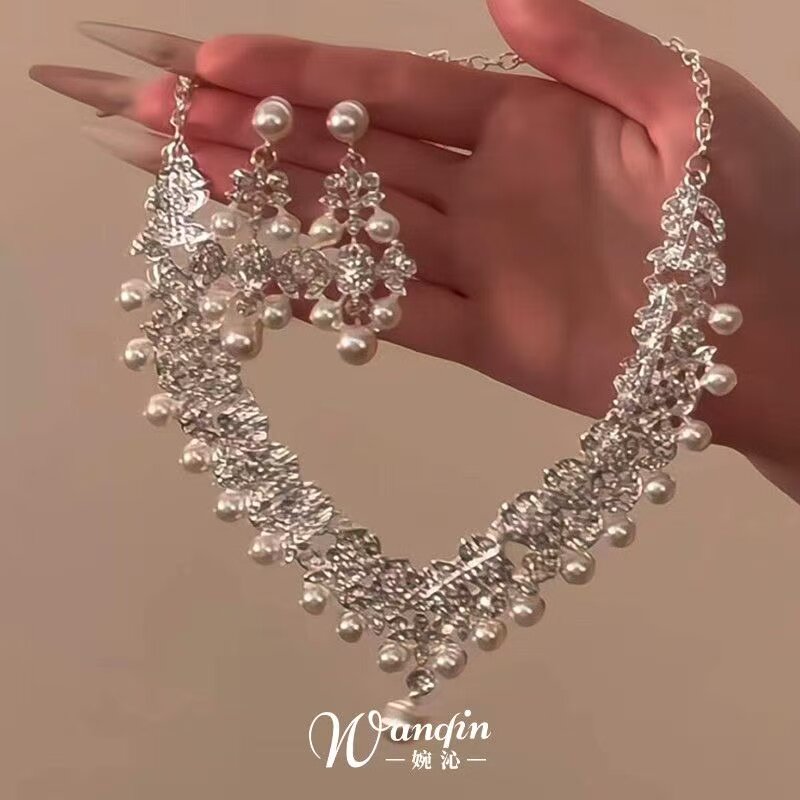 繁星璀璨法式复古仿珍珠流苏项链公主超闪锁骨链配礼服多层银色