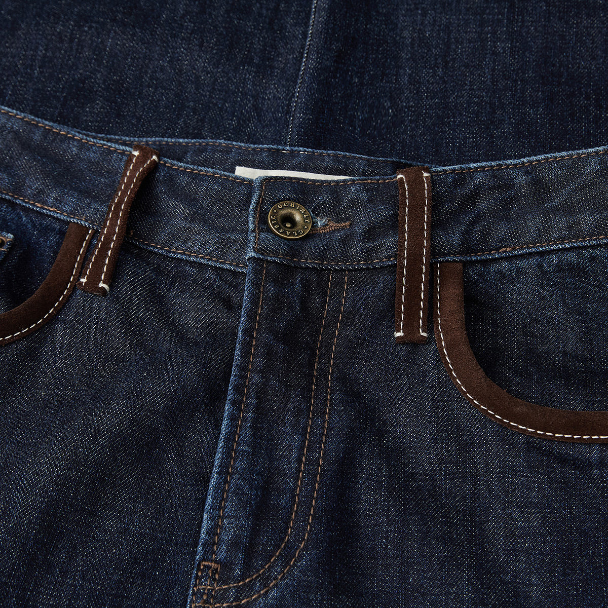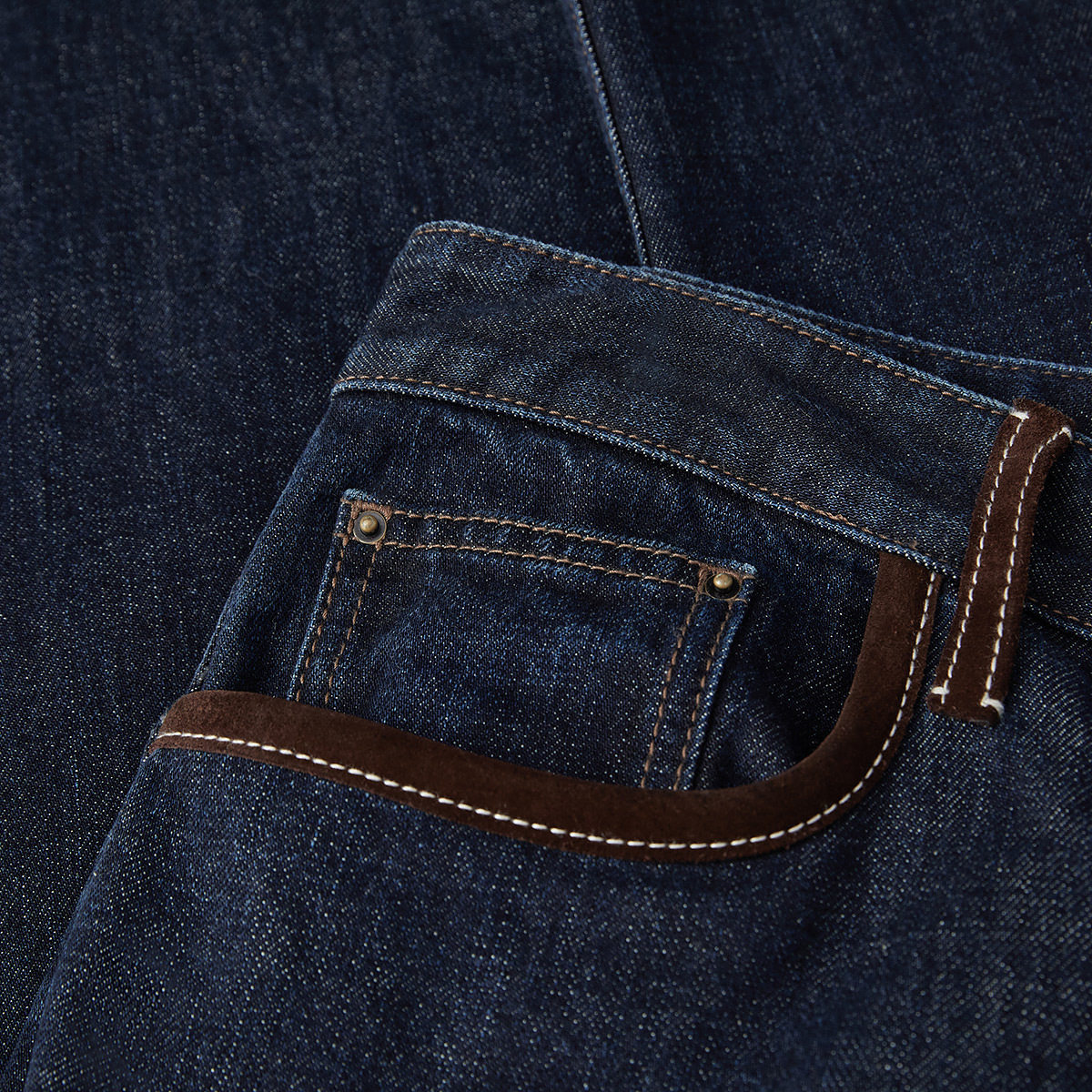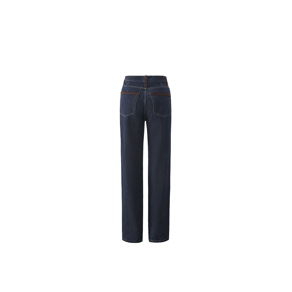 OCHIRLY欧时力 环保仿皮真皮拼接牛仔长裤直筒设计感流行秋新