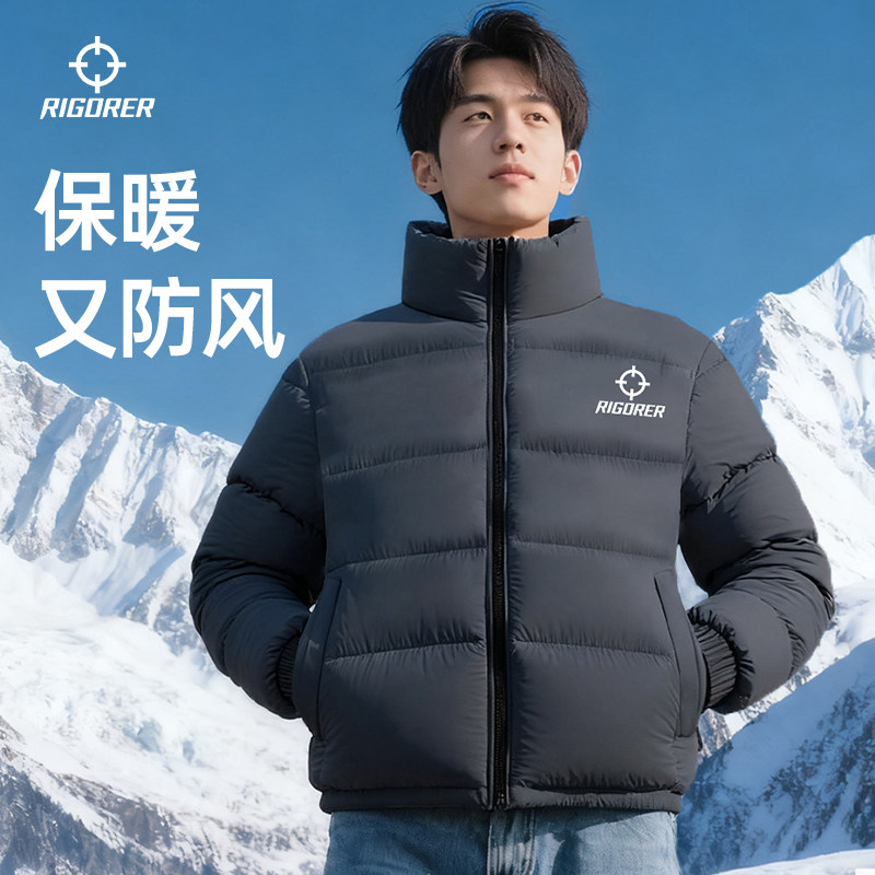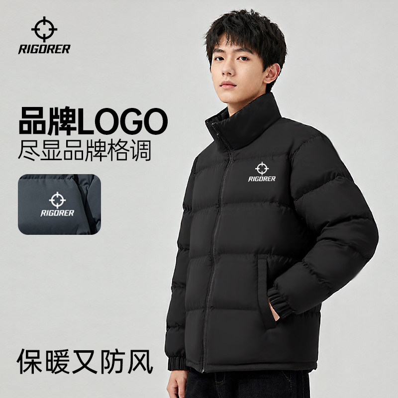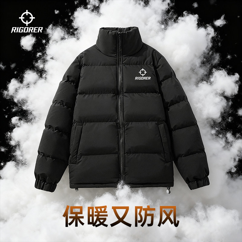 准者棉服冬季保暖加棉加厚防水抗风保暖运动棉衣黑色立领外套上衣