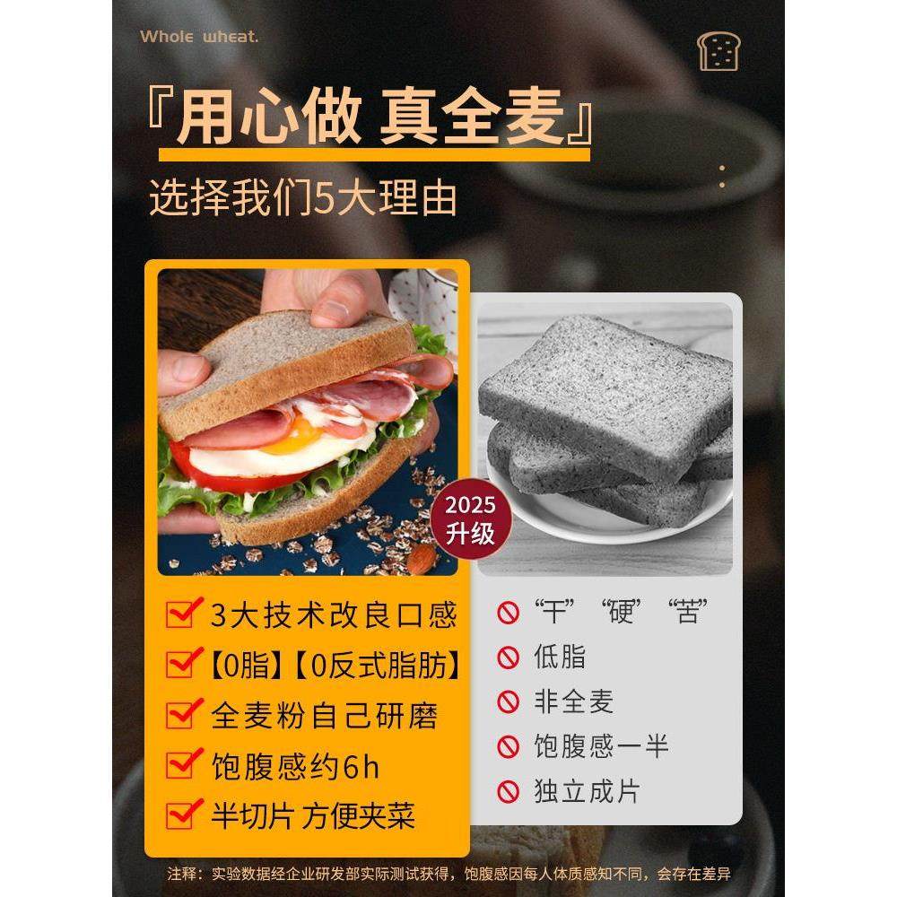0脂肪全麦面包无糖精整箱粗粮黑纯代餐饱腹食品减低脂早餐吐司片