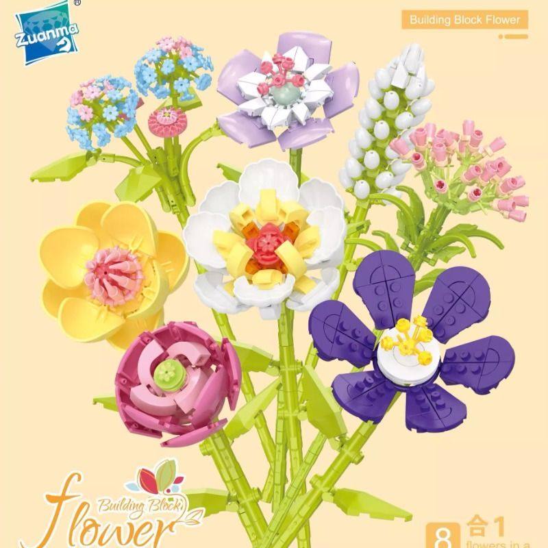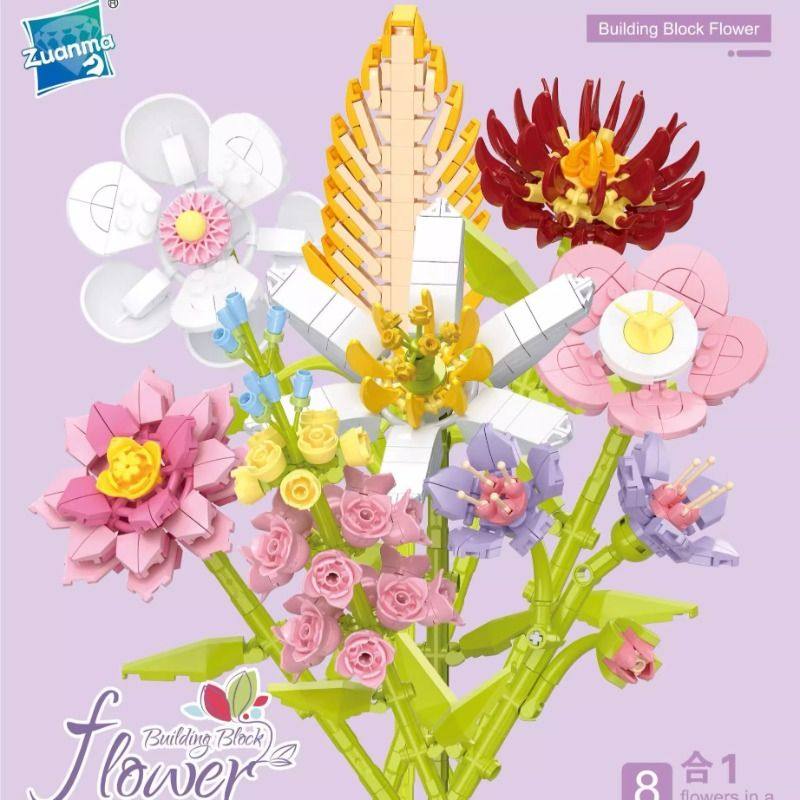 永生花朵积木玫瑰花向日葵积木花diy手工益智拼装摆件玩具送女友