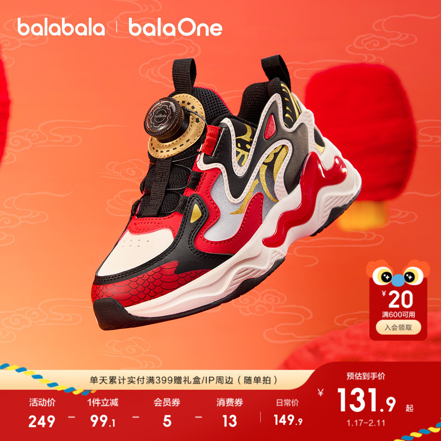 巴拉巴拉童鞋男童运动鞋跑步鞋秋冬儿童鞋子2026新款红色老爹鞋潮