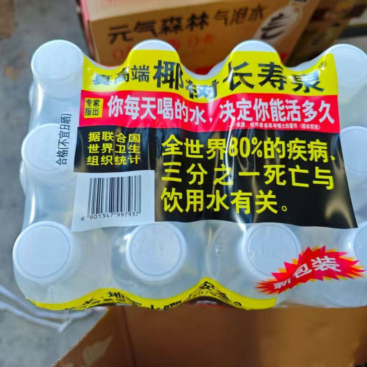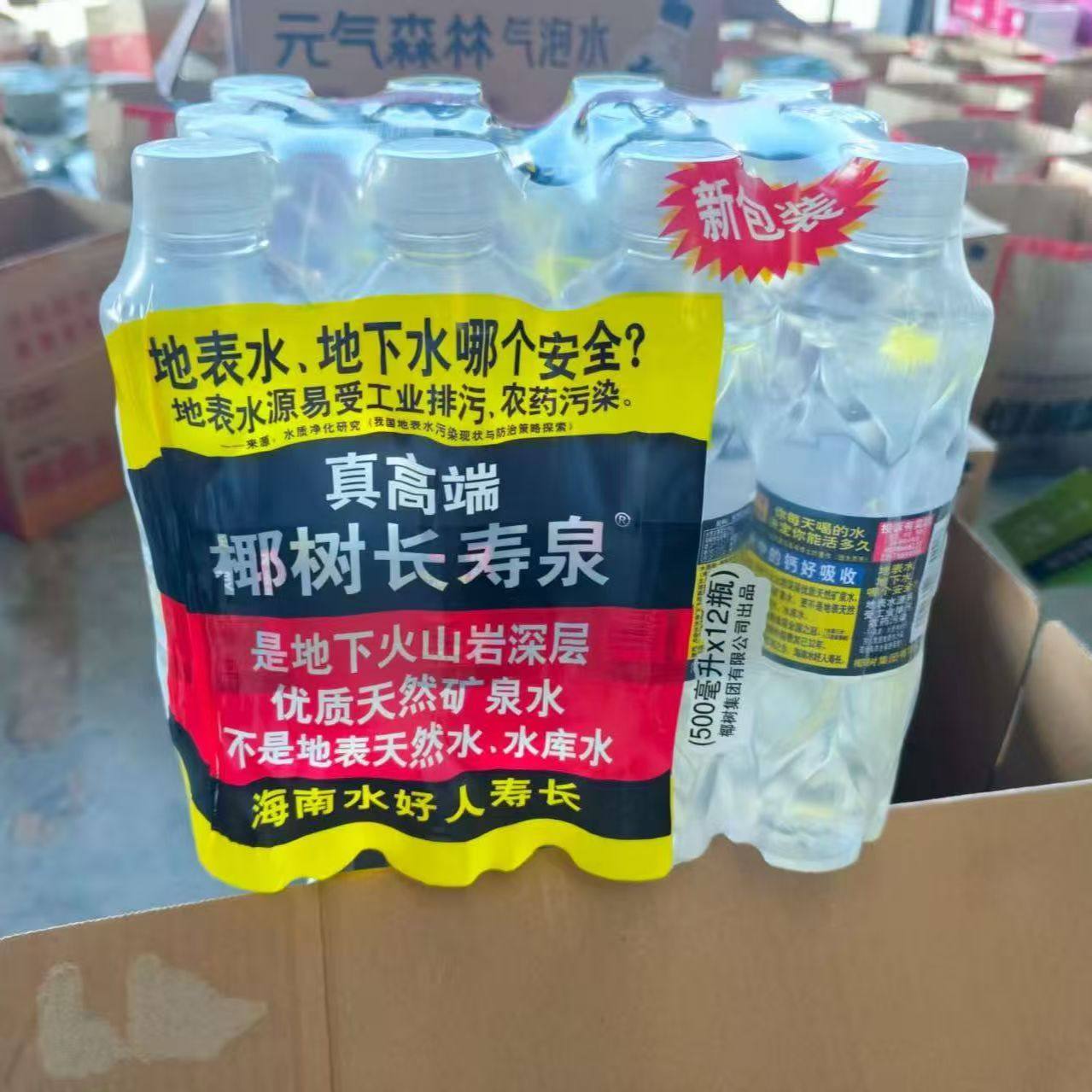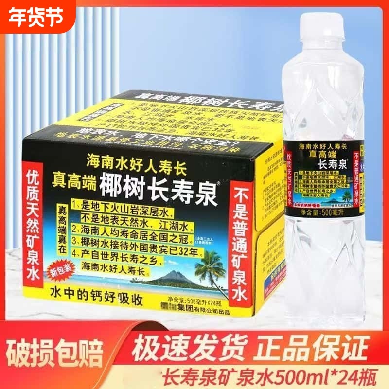椰-树饮用天然矿泉水长寿泉500ml*12瓶火山岩瓶装矿泉水