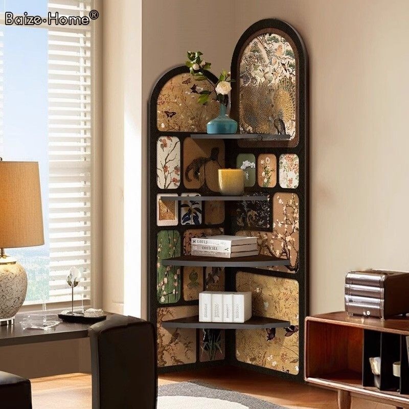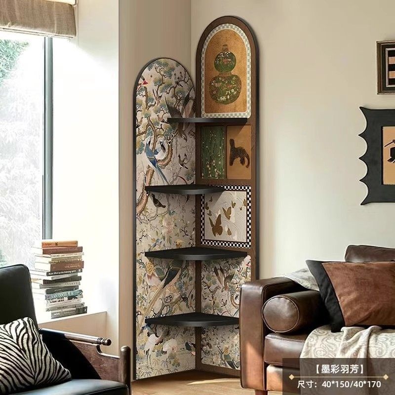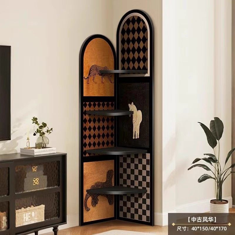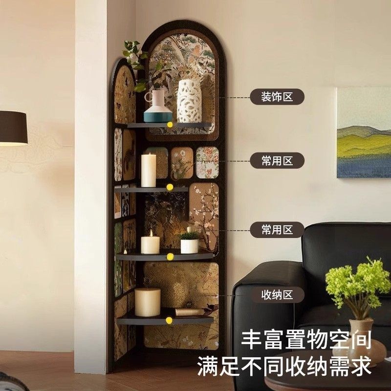 中古墙角转角柜子置物架多层床头柜落地摆件装饰卧室收纳三角柜