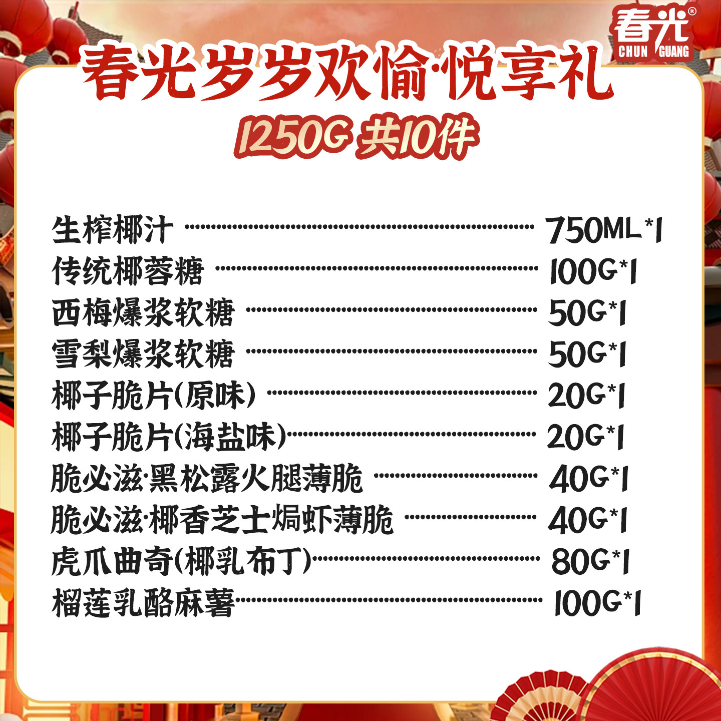 春光海南特产零食大礼包年货礼盒团购酥卷椰子椰香椰蓉悦享榴莲