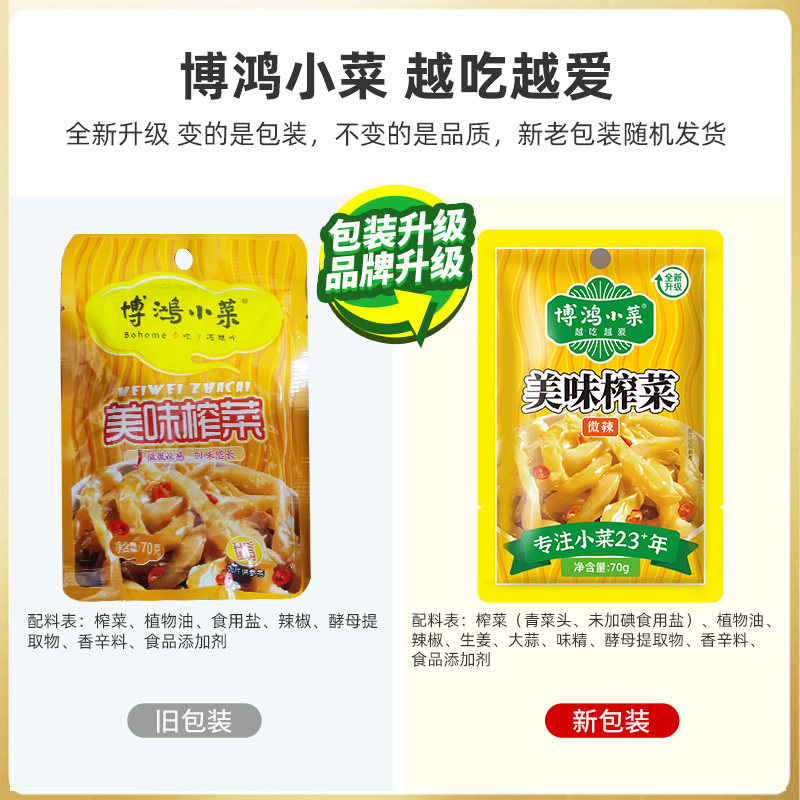 博鸿小菜美味榨菜70g去皮微辣榨菜丝开味下饭咸菜小包装脆口爽口
