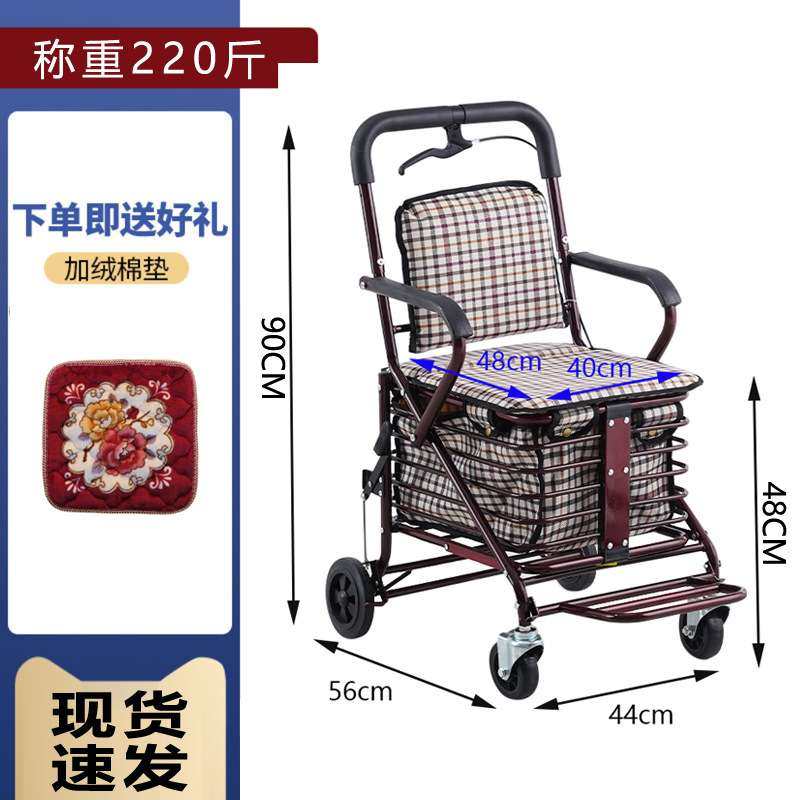 老人手推车可推可坐手推代步椅子四轮折叠购物买菜助步老年代步车